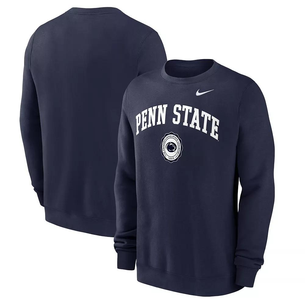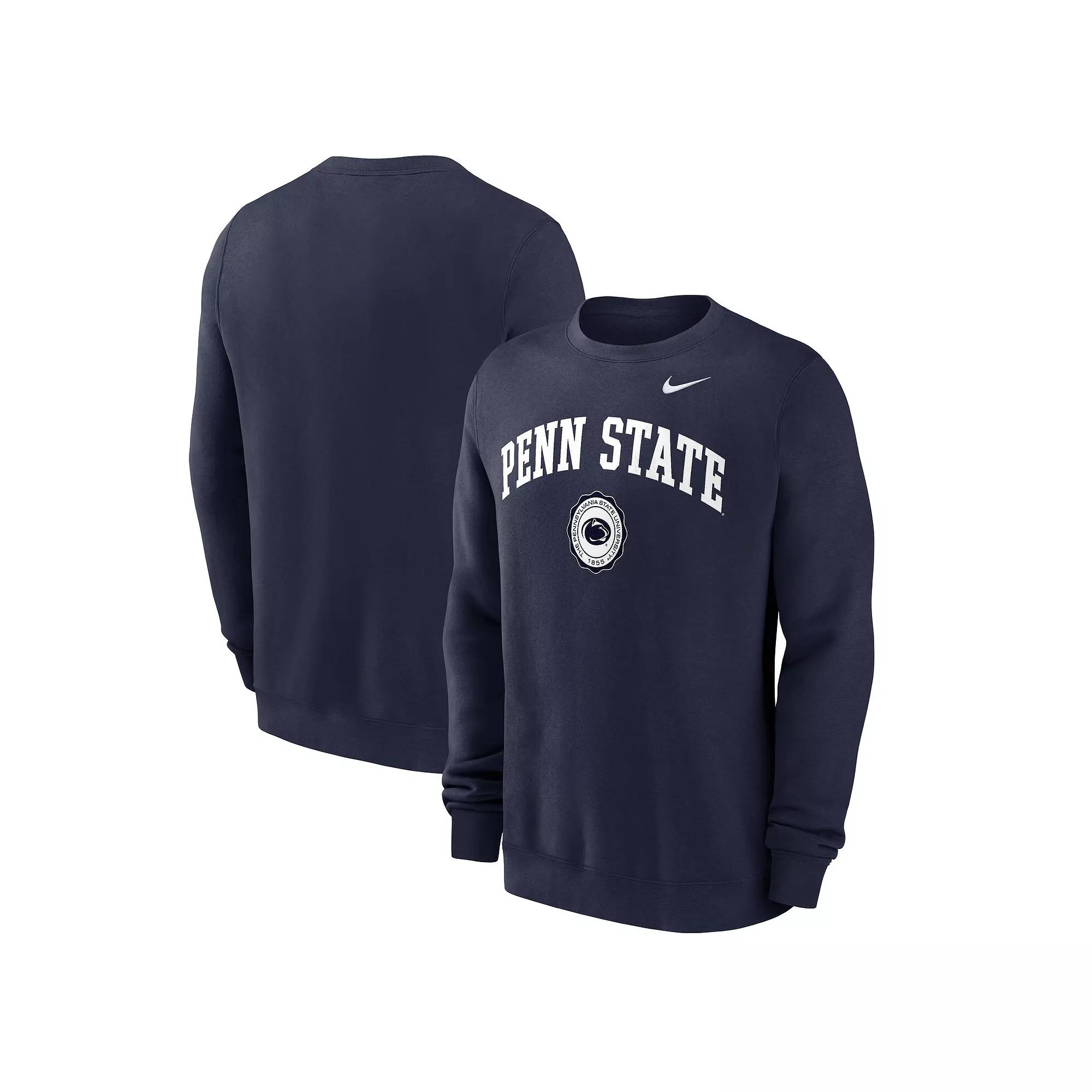 Stay warm and show your Penn State Nittany Lions pride in this Arched Seal Pullover Sweatshirt by Nike. Brushed French terry lining adds breathable warmth and softness, while the crew neck with a traditional look is comfortable to wear all day. Tackle twill and embroidered team details across the chest ensure everyone knows you cheer for the Penn State Nittany Lions.Stay warm and show your Penn State Nittany Lions pride in this Arched Seal Pullover Sweatshirt by Nike. Brushed French terry lining adds breathable warmth and softness, while the crew neck with a traditional look is comfortable to wear all day. Tackle twill and embroidered team details across the chest ensure everyone knows you cheer for the Penn State Nittany Lions.PRODUCT FEATURESMaterial: 82% Cotton/18% PolyesterImportedOfficially licensedCrew neck provides a traditional look and is comfortable to wear all dayBrushed French terry lining adds breathable warmth and softnessMachine wash, tumble dry lowMidweight sweatshirt suitable for moderate temperaturesTackle twill and embroidered team details across the chestLong sleevePulloverBrand: NikeEmbroidered Logo Color: Navy. Gender: male. Age Group: adult.