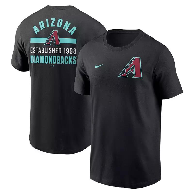 Rep your Arizona Diamondbacks all season long with this 2-Hit T-Shirt from Nike. It features an eye-catching team graphics printed on the front and back for a bold look that's perfect for game days. This tee is finished with a classic crew neck cut and crafted from soft cotton fabric for premium comfort when cheering on the Arizona Diamondbacks.Rep your Arizona Diamondbacks all season long with this 2-Hit T-Shirt from Nike. It features an eye-catching team graphics printed on the front and back for a bold look that's perfect for game days. This tee is finished with a classic crew neck cut and crafted from soft cotton fabric for premium comfort when cheering on the Arizona Diamondbacks.PRODUCT FEATURESOfficially licensedShort sleeveBrand: NikeImportedMaterial: 100% CottonTeam logo printed on left chestCrew neckNike Swoosh printed on right chestTeam graphic printed across backMachine wash, tumble dry low Size: M. Color: Black. Gender: male. Age Group: adult.