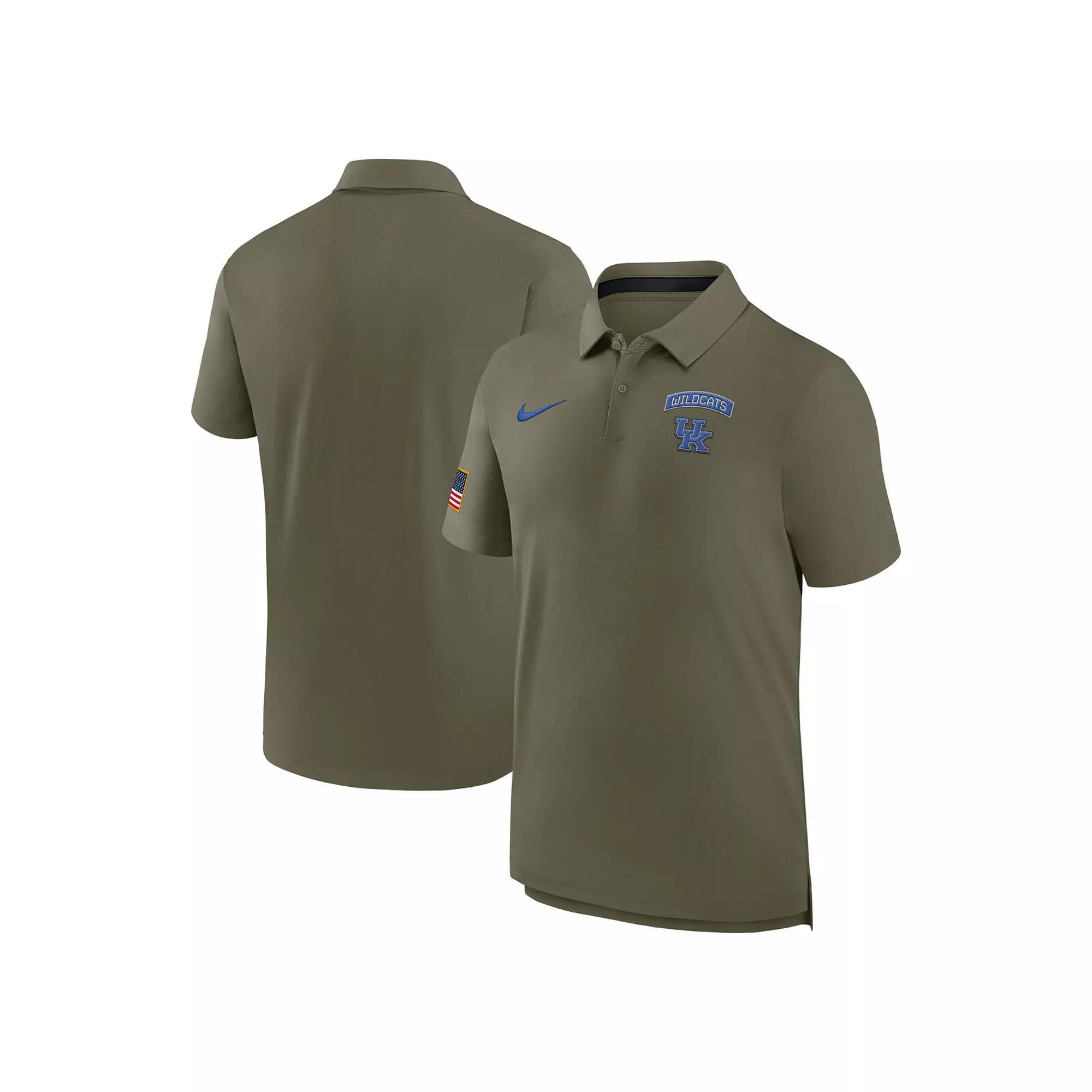 Proudly represent your Kentucky Wildcats and service members in this 2024 Military Appreciation Tour Performance Polo by Nike. It's designed with Dri-FIT technology to wick away moisture, keeping you dry and cool throughout the day. The droptail hem with side splits provides additional coverage and a more comfortable fit, making this special Kentucky Wildcats polo ideal for everyday wear.Proudly represent your Kentucky Wildcats and service members in this 2024 Military Appreciation Tour Performance Polo by Nike. It's designed with Dri-FIT technology to wick away moisture, keeping you dry and cool throughout the day. The droptail hem with side splits provides additional coverage and a more comfortable fit, making this special Kentucky Wildcats polo ideal for everyday wear.PRODUCT FEATURESMachine wash, tumble dry lowOfficially licensedDroptail hem with side splits creates a more comfortable fitEmbroidered American flag patch on right sleeveDri-FIT technology wicks away moistureBrand: NikeThis product provides UVA and UVB protection from the sun only in the areas covered by the garment. To protect exposed areas, the use of good quality sunscreen is recommended.ImportedMaterial: 88% Recycled Polyester/12% SpandexTwo-button placketShort sleeveTeam name and logo embroidered in military-style design at left chest Gender: male. Age Group: adult.