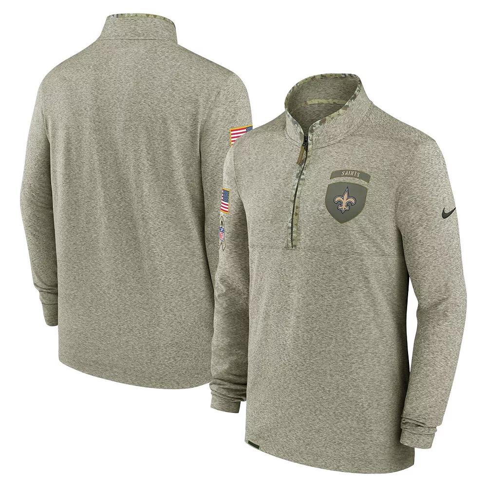 Honor our service members while supporting the New Orleans Saints with this Salute to Service Quarter-Zip Top. This Nike gear features a military-inspired color scheme, complete with an American flag and Salute To Service ribbon appliqu on the right sleeve. The crisp New Orleans Saints graphics and camouflage details will add some much-needed spirit to your game day collection. The NFL does not profit from the sale of Salute to Service products. Charitable contributions are awarded by the NFL Foundation to the NFLs military nonprofit partners. For more information, please visit www.NFL.com/causes/salute.Honor our service members while supporting the New Orleans Saints with this Salute to Service Quarter-Zip Top. This Nike gear features a military-inspired color scheme, complete with an American flag and Salute To Service ribbon appliqu on the right sleeve. The crisp New Orleans Saints graphics and camouflage details will add some much-needed spirit to your game day collection. The NFL does not profit from the sale of Salute to Service products. Charitable contributions are awarded by the NFL Foundation to the NFLs military nonprofit partners. For more information, please visit www.NFL.com/causes/salute.PRODUCT FEATURESOfficially licensedBrand: NikeU.S. flag patch on right sleeve: To reflect military uniforms and tradition, the flag is positioned so that the stars face the front and the stripes are behind. This gives the effect of the flag flying in the breeze as the wearer moves forward.ImportedMaterial: 88% Polyester/12% SpandexLong sleeveMachine wash, tumble dry low1/4-Zip Color: Team. Gender: male. Age Group: adult.