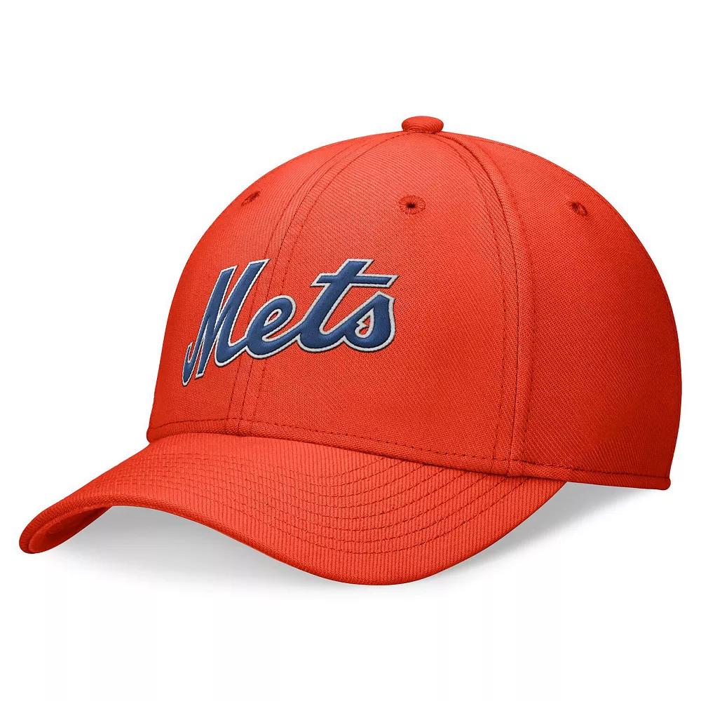 Featuring a lightweight design and sweat-wicking technology, this Evergreen Swoosh Hat helps your head stay cool and comfortably covered. The embroidered New York Mets wordmark across the crown provides an official team look. Benefits:Nike Dri-FIT technology moves sweat away from your skin for quicker evaporation, helping you stay dry and comfortable. Stretch closure helps provide a comfortable fit. Product Details:6-panel design. Embroidered eyelets. 98% polyester/2% spandex. Hand wash. Imported. Style: NB1789LNME; Color: Orange; Size: L/XL; Gender: Male; Age Group: Adult | New York Mets Evergreen Swoosh Men's Nike Dri-FIT MLB Hat in Orange, Size: L/XL | NB1789LNME-GEC