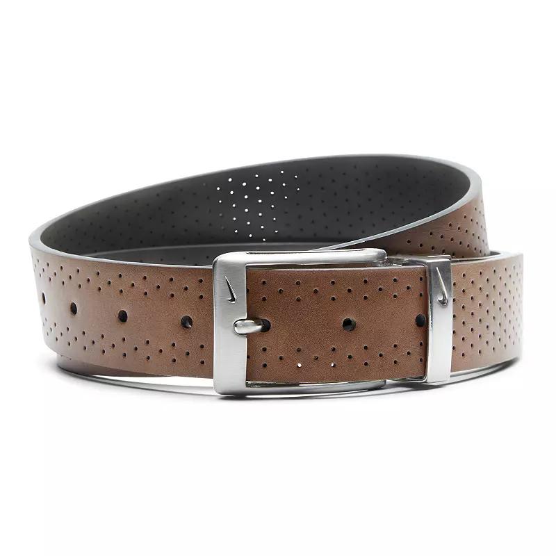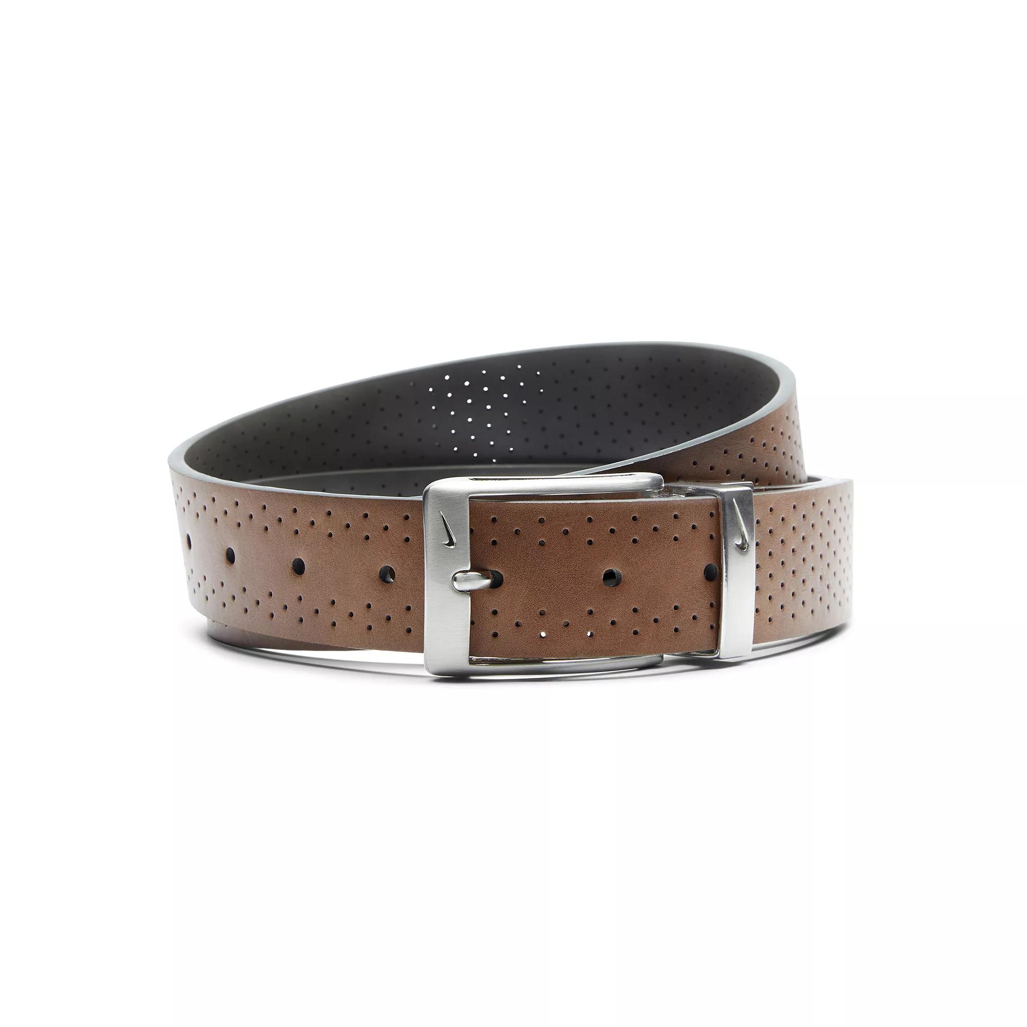 Finish off your look with this Men's Nike Perforated Ultralight Reversible Belt. How do you accessorize? Check out our ACCESSORIES GUIDE for essential tips to elevate your style with must-have accessories.Finish off your look with this Men's Nike Perforated Ultralight Reversible Belt. How do you accessorize? Check out our ACCESSORIES GUIDE for essential tips to elevate your style with must-have accessories.FEATURES Brushed nickel Ultralight harness buckle with Nike 'Swoosh' logo detail Smooth grain flat-edge leather strap with perforated detail Nike Breathable + Ultralight technology ReversibleFIT & SIZING 46" x 1.25" x .25" 35mm widthFABRIC & CARE Spot clean Leather Imported Color: Black. Gender: male. Age Group: adult.