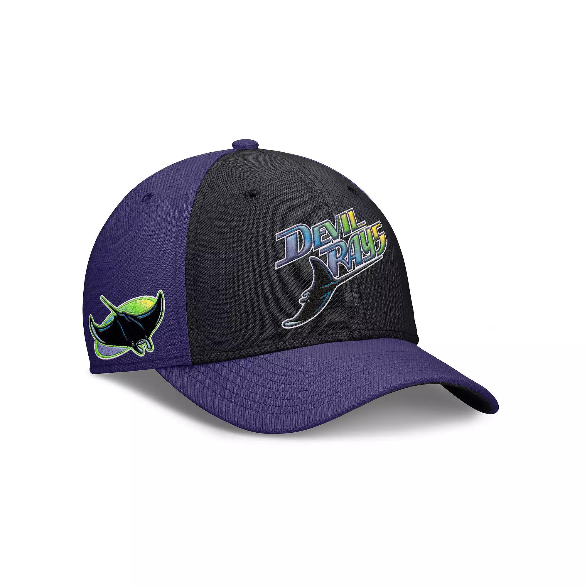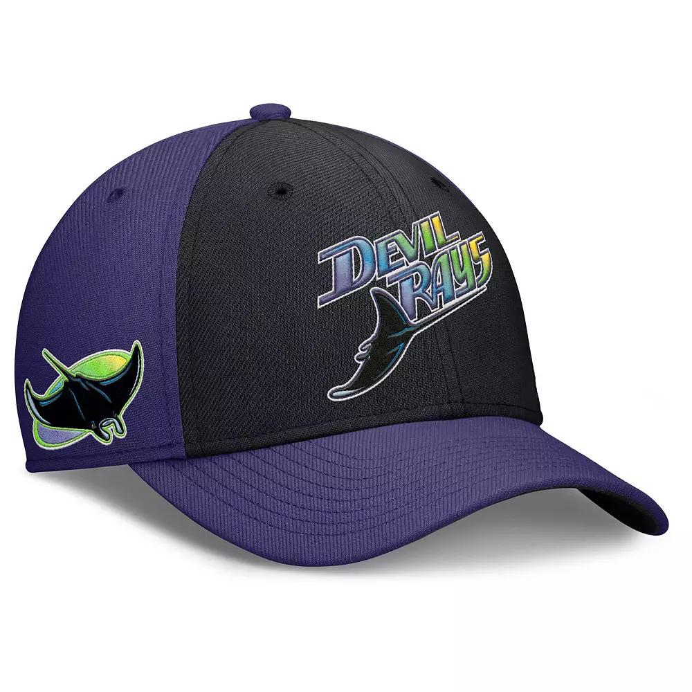 Bring back an old-school Tampa Bay Rays look with this Rise Swoosh Performance Flex Hat by Nike. Its two-tone design features vintage team details embroidered on the front, back and side panel. Made from stretch wool twill fabric, this Tampa Bay Rays hat feels comfortable to wear all day.Bring back an old-school Tampa Bay Rays look with this Rise Swoosh Performance Flex Hat by Nike. Its two-tone design features vintage team details embroidered on the front, back and side panel. Made from stretch wool twill fabric, this Tampa Bay Rays hat feels comfortable to wear all day.PRODUCT FEATURESImportedStretch fitSix panels with eyeletsMid CrownWipe clean with a damp clothCurved billOfficially licensedDri-FIT technology wicks away moistureVintage team wordmark embroidered with raised details across the frontBrand: NikeMaterial: 98% Polyester/2% SpandexThrowback team logo embroidered on the right-side panel and backMade from stretch wool twill fabricStructured fit Size: S/M. Color: Purple. Gender: male. Age Group: adult.