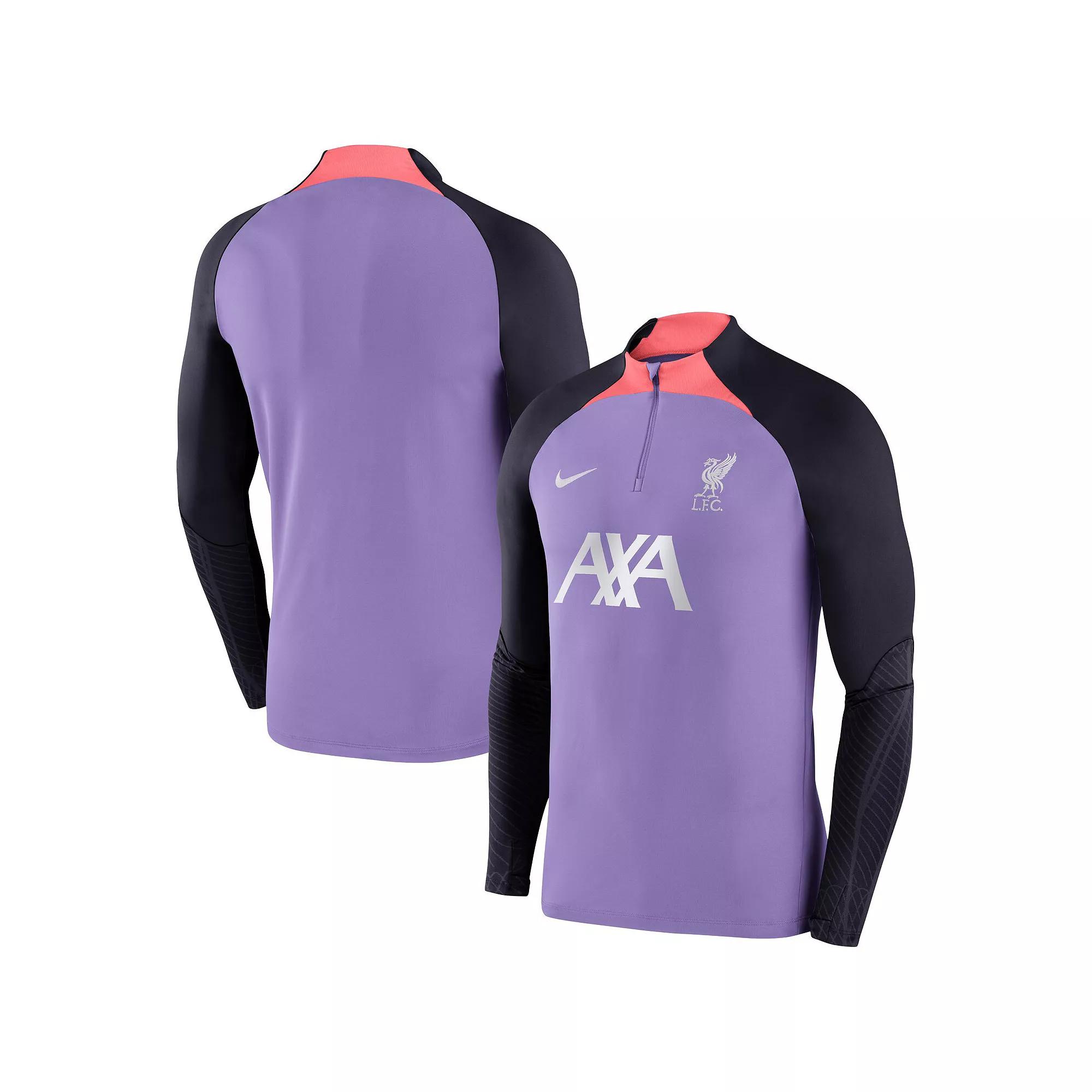 With design details specifically tailored for soccer�s rising stars, a slim, streamlined fit ensures that nothing comes between you and the ball. Sweat-wicking technology helps keep you cool and composed while you fine-tune your skills. Benefits: Nike Dri-FIT technology moves sweat away from your skin for quicker evaporation, helping you stay dry and comfortable. Thumbholes let you extend your coverage and help hold the sleeves in place while you move. Longer hem at the back helps keep you covered. Product Details: Body: 91% polyester/9% spandex. Panels: 94% polyester/6% spandex. Machine wash. Imported. Style: DZ0843; Color: Space Purple/Hot Punch/White; Size: 2XL; Gender: Male; Age Group: Adult | Liverpool FC Strike Men's Nike Dri-FIT Knit Soccer Drill Top in Purple, Size: 2XL | DZ0843-568