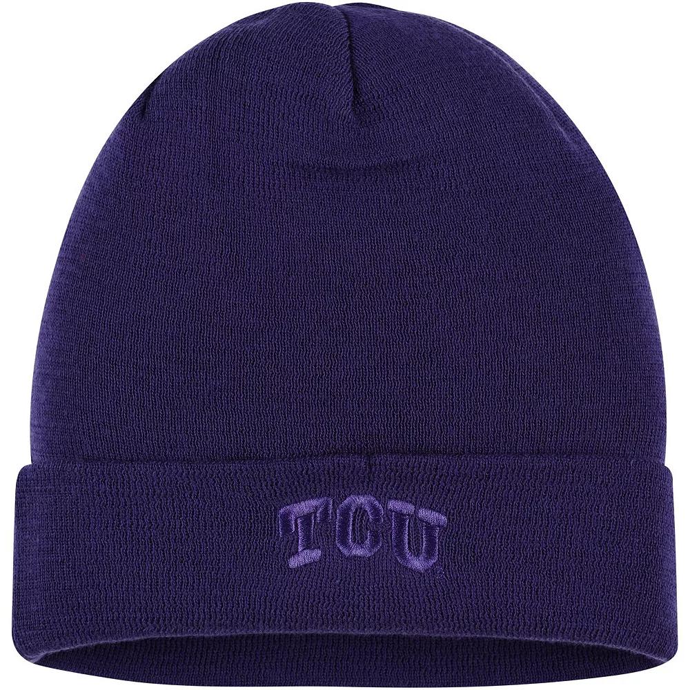 Add a solid TCU Horned Frogs accessory to your selection of cold weather gear with this Tonal cuffed knit hat from Nike. It features the TCU Horned Frogs logo embroidered on soft fabric in a primary team color. The snug fit also keeps heat in for continuous warmth.Add a solid TCU Horned Frogs accessory to your selection of cold weather gear with this Tonal cuffed knit hat from Nike. It features the TCU Horned Frogs logo embroidered on soft fabric in a primary team color. The snug fit also keeps heat in for continuous warmth.PRODUCT FEATURESImportedHand wash, dry flatOfficially licensedCuffedOne size fits mostMaterial: 100% AcrylicEmbroidered graphics with raised detailsBrand: Nike Size: One Size. Color: Purple. Gender: male. Age Group: adult. Material: COTTON.