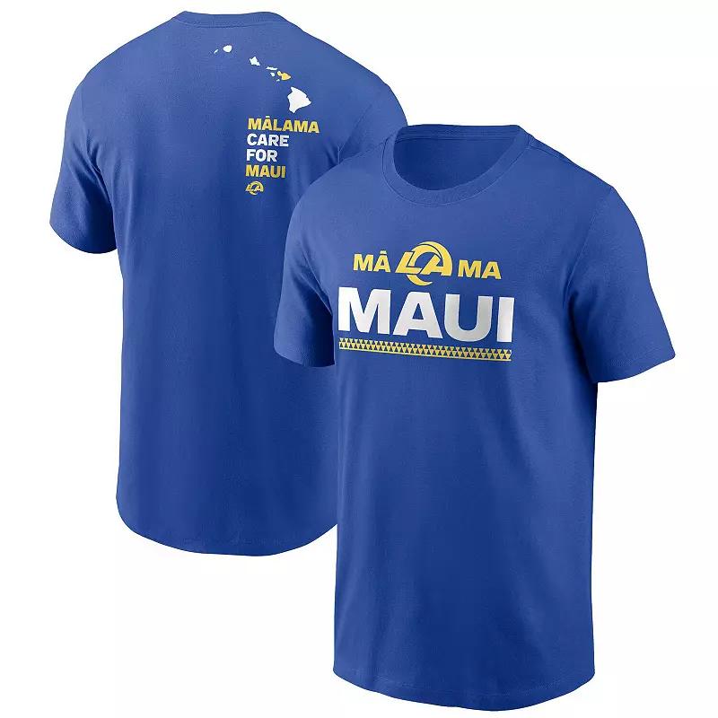 Show your support for the Maui wildfire relief efforts with this Los Angeles Rams T-Shirt. The NFL, the Los Angeles Rams and Fanatics do not retain any profits from the sale of this product. Charitable funds are donated to the American Red Cross.
