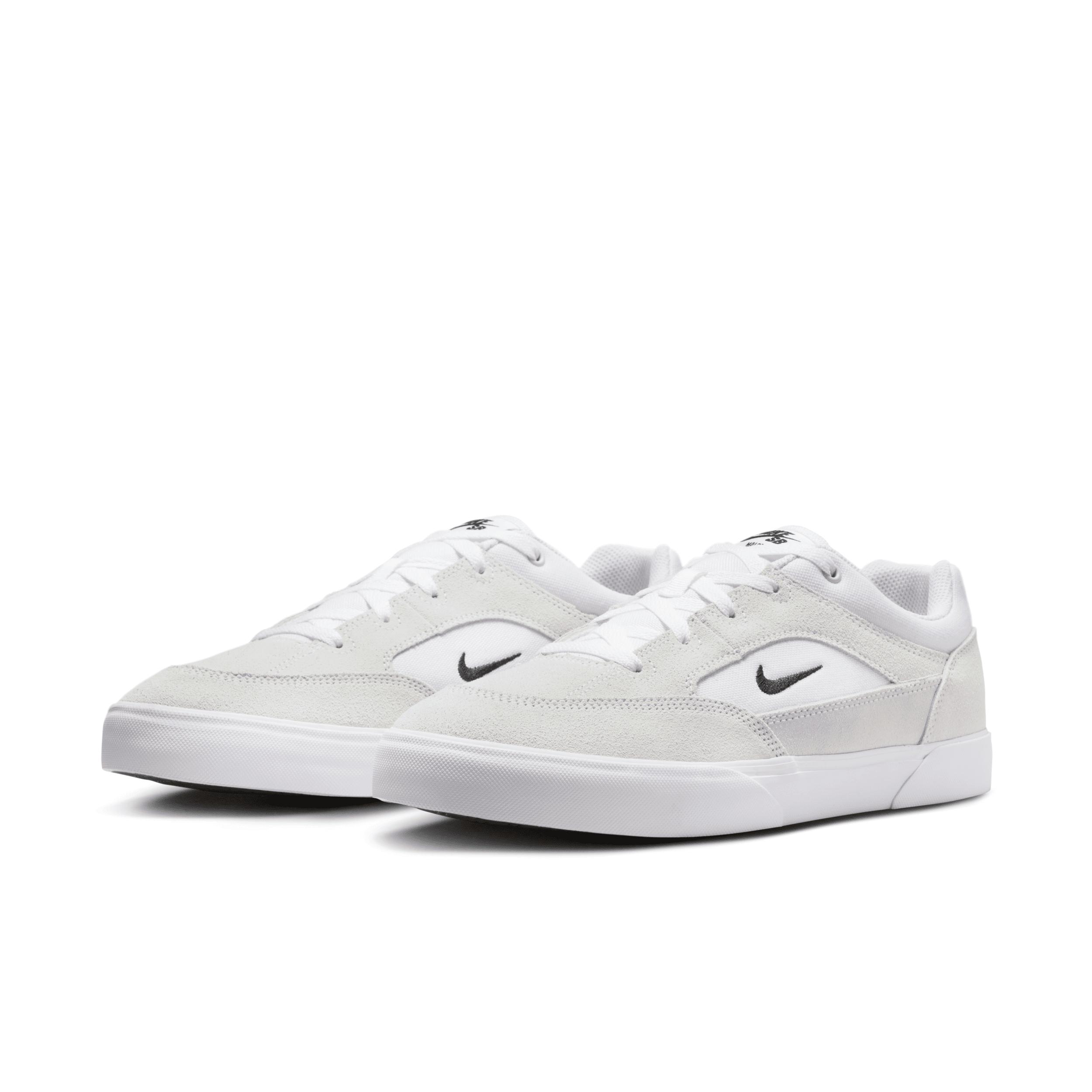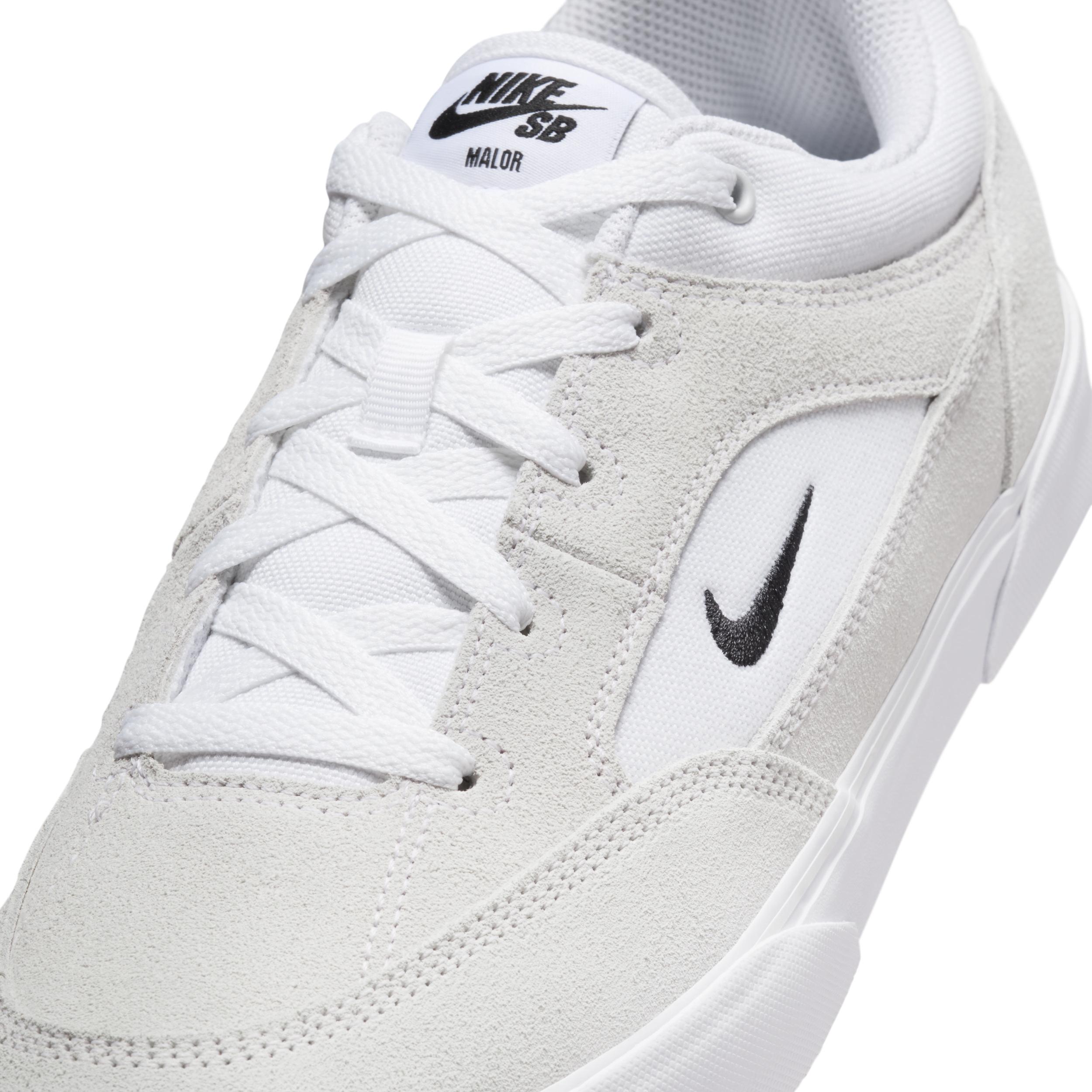 Destroy this shoe! The SB Malor was designed for entry-level skaters who need a shoe that can handle long hours of practice honing their skills. Layers of suede and canvas keep it durable, while the outsole combines a herringbone pattern with the Air Force 1 circular pattern to help accentuate both grip and movement. Step in, the Malor is ready to get shredded. Benefits:Suede and canvas upper creates a classic look thats built to last. Vulcanized construction fuses the sole to the upper for a flexible, broken-in feel. Extended toe bumper adds extra durability. Cushioned tongue and collar for added padding. Product Details:Rubber midsole. Rubber outsole. Style: FV6064; Color: White/Summit White/Gum Light Brown/Black; Size: 5.5; Gender: Male; Age Group: Adult | Nike SB Malor Mens Shoes in White, Size: 5.5 | FV6064-101