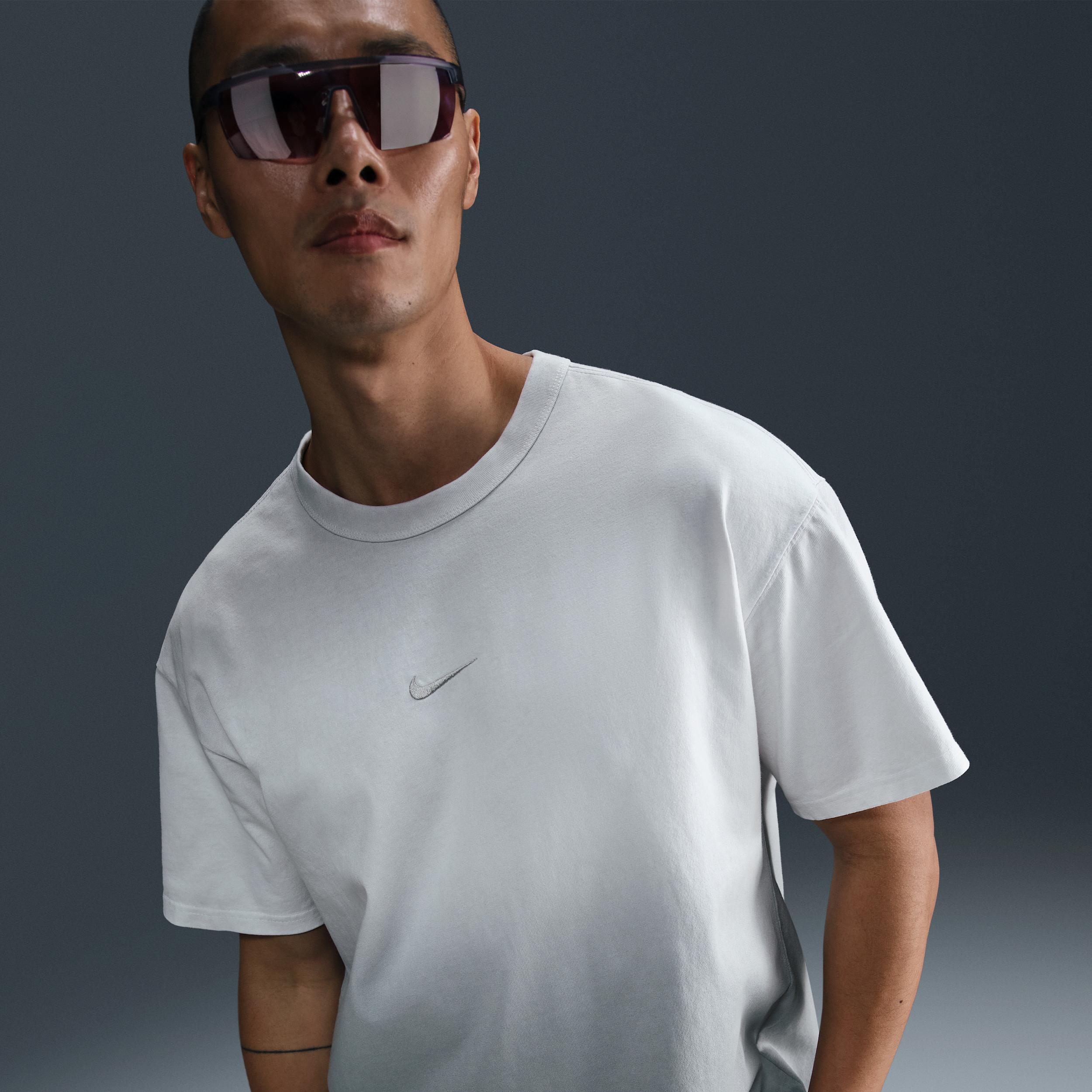 Elevate your essentials with this premium, triple-dip-dyed tee. Max90 tees have a loose fit with dropped shoulders, longer sleeves and a roomy feel through the body and hips for a casual look. Midweight cotton feels soft and slightly structured for durable, daily comfort. Product Details:Embroidered Swoosh logo. Ribbed collar. 100% cotton. Machine wash. Imported. Style: HJ0724; Color: Photon Dust; Size: S; Gender: Male; Age Group: Adult | Nike Sportswear Max90 T-Shirt in Grey, Size: Small | HJ0724-025