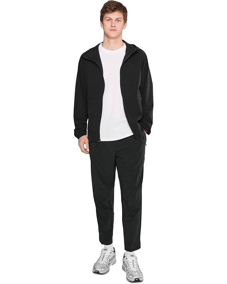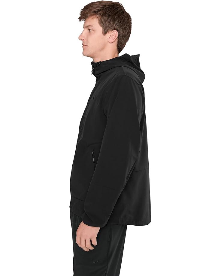 Built for running, training, and yoga, the Nike® Unlimited Repel Hooded Versatile Jacket helps keep you moving throughout the year, thanks to its premium materials and innovative features. This breathable jacket is built around super stretchy fabric that moves with you from box jumps to backbends. Its Durable Water-repellent(DWR) coating helps keep you prepared for unexpected showers. Plus, it neatly packs down into a slim, built-in pouch for maximum convenience and space-saving in your gym bag. The full-zip design helps you easily change in and out of the jacket. This zip-up jacket is styled with long sleeves, elasticized cuffs, and a straight hem. Its attached hood with drawcord lets you cinch up your perfect fit. This zip-up jacket sheds rain and moves sweat away from your skin.