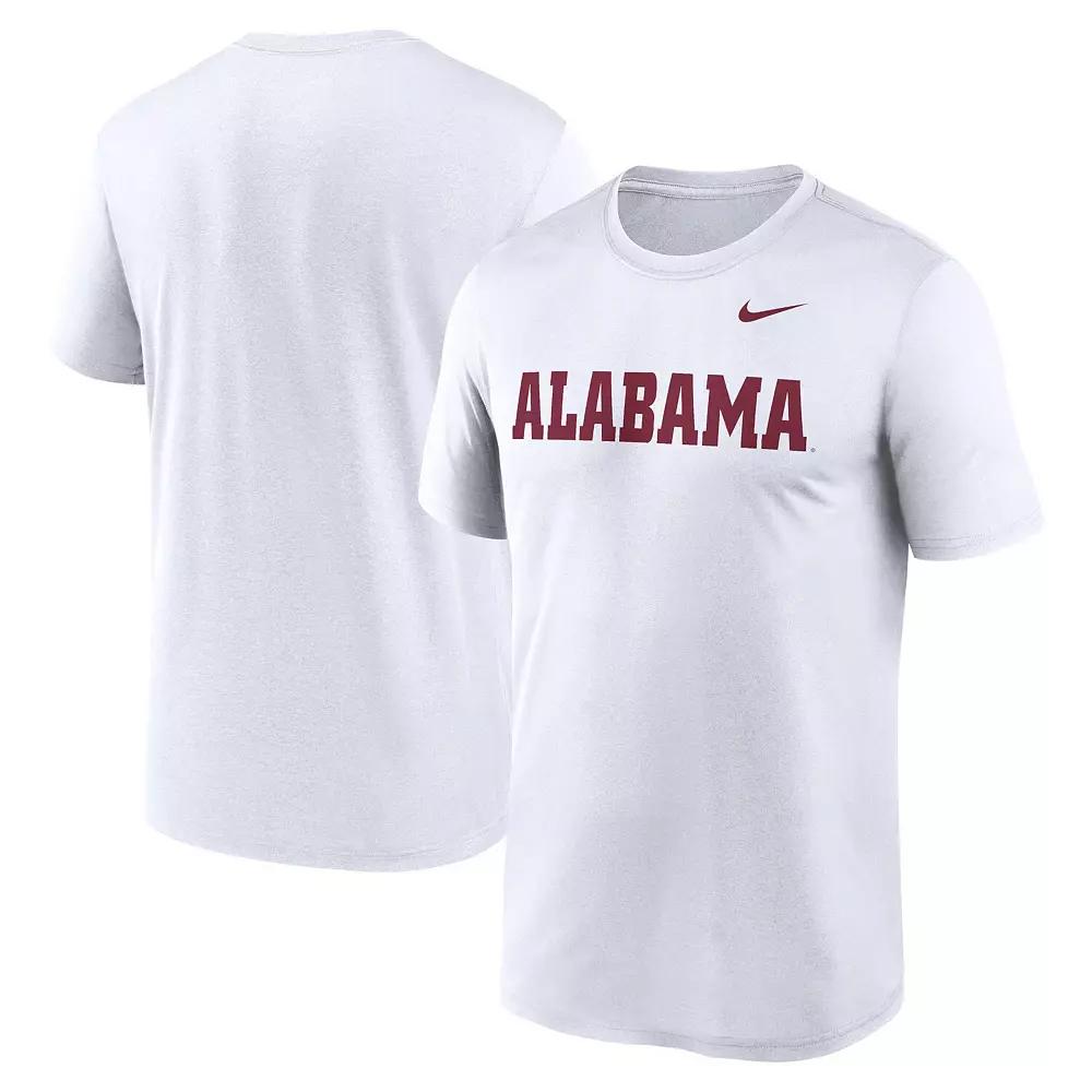 Proudly show off your die-hard loyalty to the Alabama Crimson Tide by wearing this Primetime Legend Wordmark tee. Constructed by Nike, this T-shirt features the Alabama Crimson Tide wordmark printed across the chest instead of their usual logo, which will help you stand out. The soft fabric and classic construction will ensure you stay comfortable all day long.Proudly show off your die-hard loyalty to the Alabama Crimson Tide by wearing this Primetime Legend Wordmark tee. Constructed by Nike, this T-shirt features the Alabama Crimson Tide wordmark printed across the chest instead of their usual logo, which will help you stand out. The soft fabric and classic construction will ensure you stay comfortable all day long.PRODUCT FEATURESOfficially licensedMachine wash with garment inside out, tumble dry lowScreen print graphicsBrand: NikeCrew neckImportedShort sleeveMaterial: 100% Polyester Color: White. Gender: male. Age Group: adult.