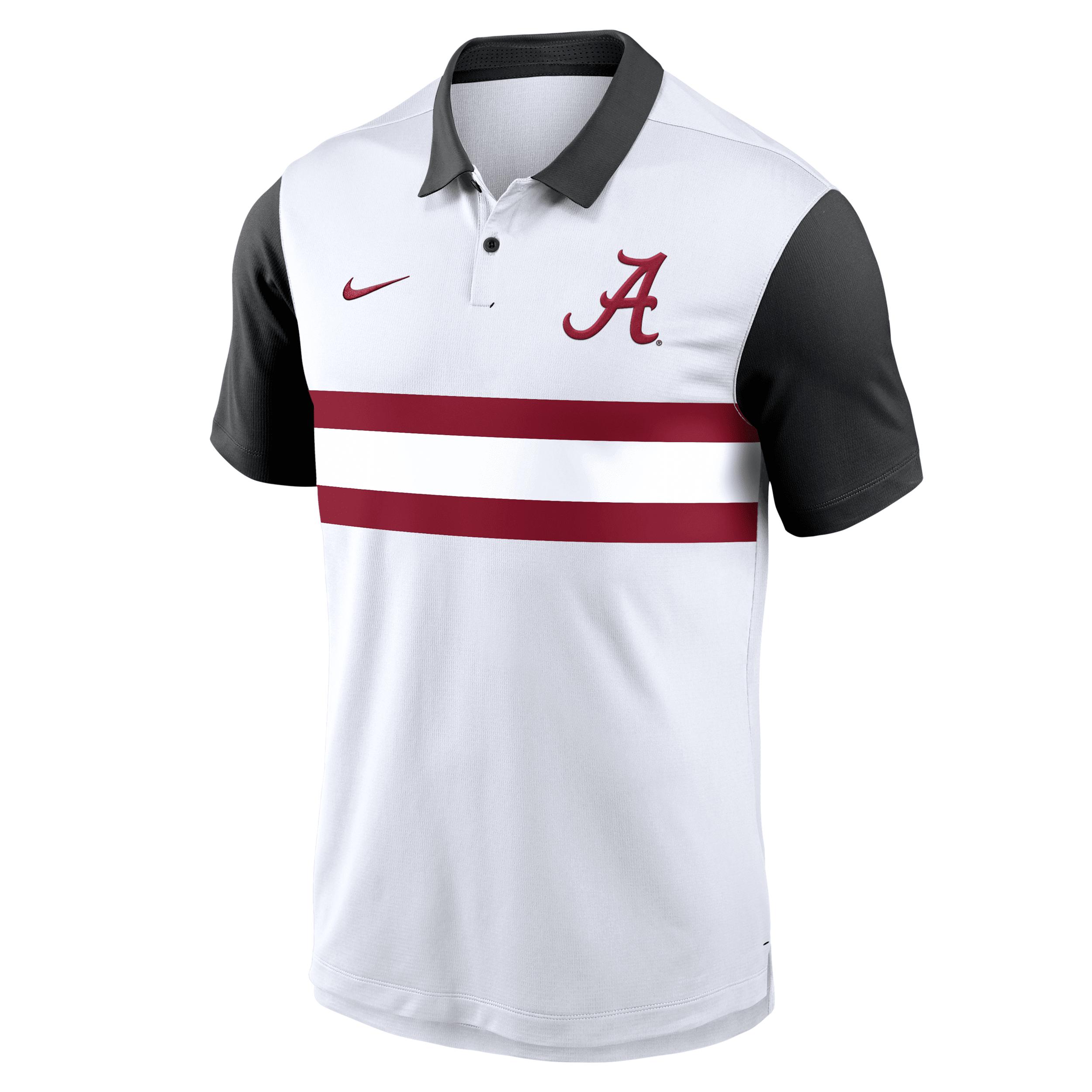 Elevate your Alabama Crimson Tide game-day style with the Nike Primetime Campus Vapor Performance Polo. This polo is constructed with Nikes innovative Dri-fit technology, ensuring you stay cool, dry, and comfortable whether youre cheering from the sidelines or celebrating a victory lap. The soft, stretchy polyester blend, striped team color pattern, and embroidered team logo create a winning combination of performance and style.
