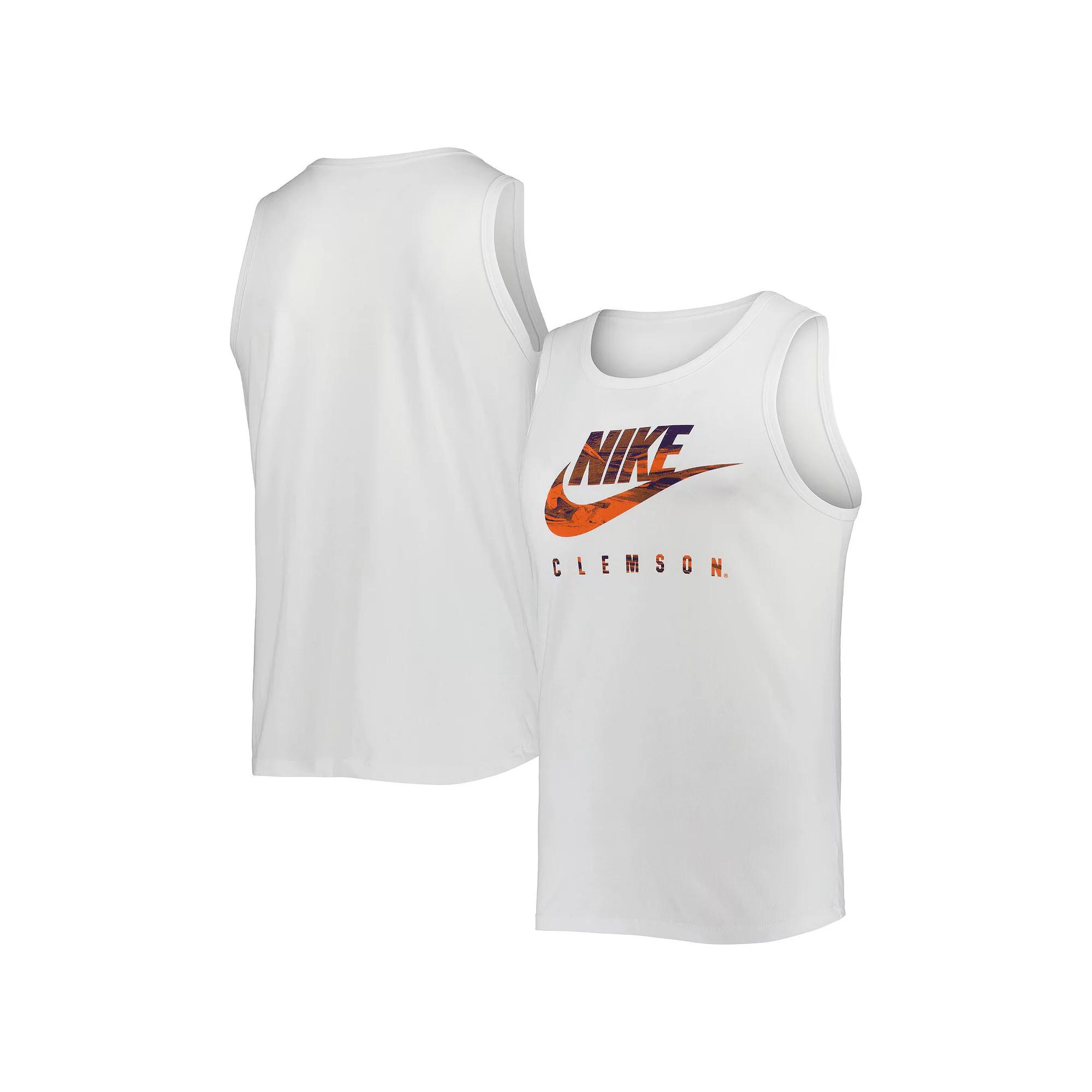 Combine your spirited Clemson Tigers fandom with some relaxing vibes in this Spring Break Futura tank top. It features soft blended material and Nikes Dri-FIT fabric technology, plus a scoop neck and sleeveless design to provide maximum comfort as you cheer on your favorite team. Kick back and enjoy the moment as you rep the Clemson Tigers.Combine your spirited Clemson Tigers fandom with some relaxing vibes in this Spring Break Futura tank top. It features soft blended material and Nikes Dri-FIT fabric technology, plus a scoop neck and sleeveless design to provide maximum comfort as you cheer on your favorite team. Kick back and enjoy the moment as you rep the Clemson Tigers.PRODUCT FEATURESBrand: NikeCrew neckScreen print graphicsSleevelessMachine wash, tumble dry lowTagless CollarMaterial: 57% Cotton/43% PolyesterImportedOfficially licensedDri-FIT technology wicks away moisture Size: 2XL. Color: White. Gender: male. Age Group: adult.