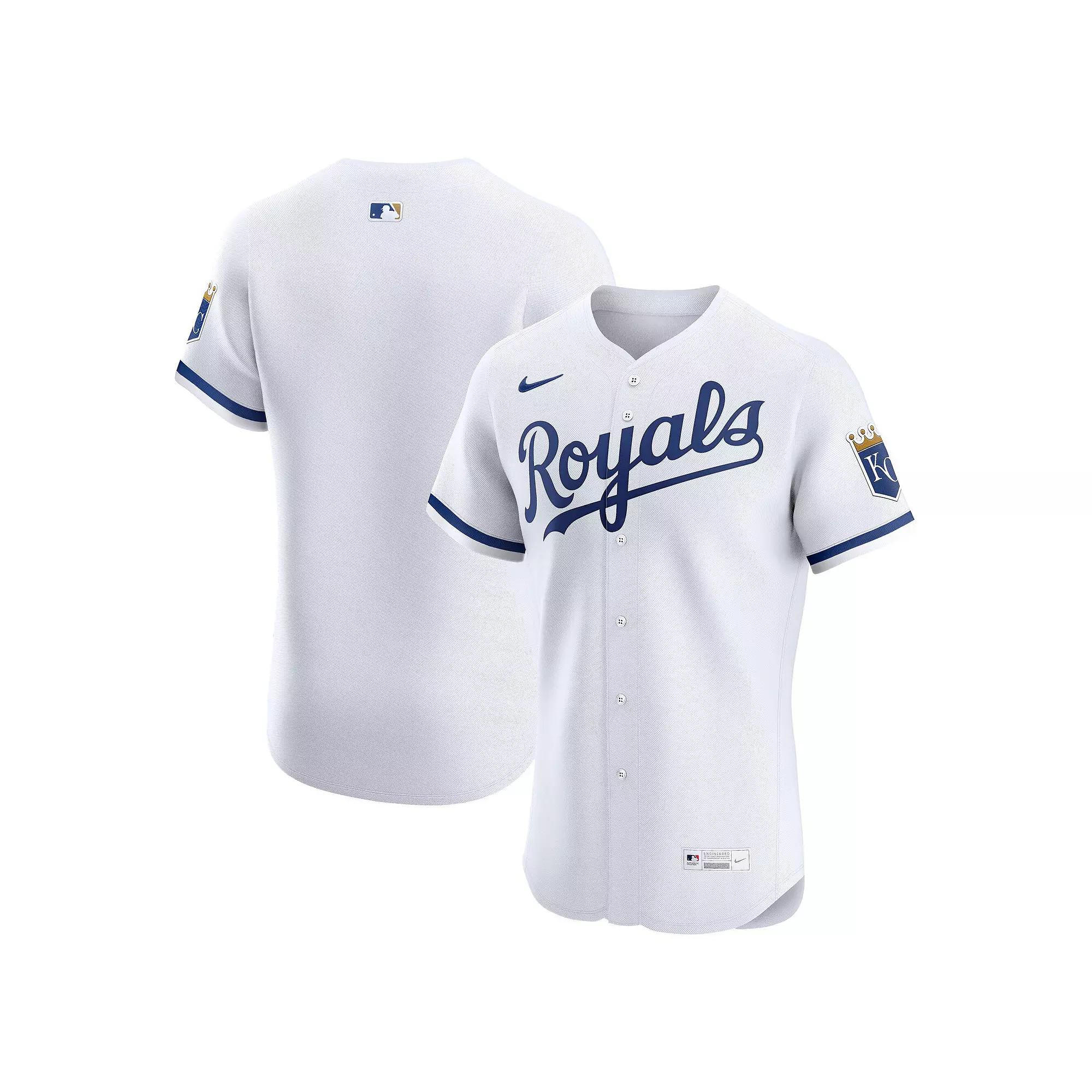 Crafted with an athletic fit and premium twill details, this Elite Jersey features the official on-field design of the Kansas City Royals for an authentic piece of gear. Nike combined the Vapor Premier chassis and Dri-FIT ADV technology to provide a lightweight feel with exceptional sweat-wicking power. Stretch mesh fabric delivers breathable, flexible comfort that ensures you stay comfortable all season long in this Kansas City Royals jersey.Crafted with an athletic fit and premium twill details, this Elite Jersey features the official on-field design of the Kansas City Royals for an authentic piece of gear. Nike combined the Vapor Premier chassis and Dri-FIT ADV technology to provide a lightweight feel with exceptional sweat-wicking power. Stretch mesh fabric delivers breathable, flexible comfort that ensures you stay comfortable all season long in this Kansas City Royals jersey.PRODUCT FEATURESRounded hemNike EliteMove To Zero is Nikes journey toward zero carbon and zero waste to help protect the future of sport. Apparel labeled sustainable materials is made with at least 55% recycled content.Fullbutton frontWoven jock tagVapor Premier chassis improves mobility, enhances moisture management and provides a lightweight fit with additional stretchMLB Batterman silhouette below back seam yokeAthletic cutDri-FIT ADV technology combines moisture-wicking fabric with advanced engineering and features to help you stay dry and comfortableBrand: NikeShort sleeveJersey Color Style: HomeOfficially licensedThe official onfield jerseyStitched twill wordmark or logoEmbroidered Swoosh patchMachine wash, tumble dry lowSewndown sleeve patchMaterial: 95% Recycled Polyester/5% Elastane Stretch Mesh Size: 44. Color: White. Gender: male. Age Group: adult.