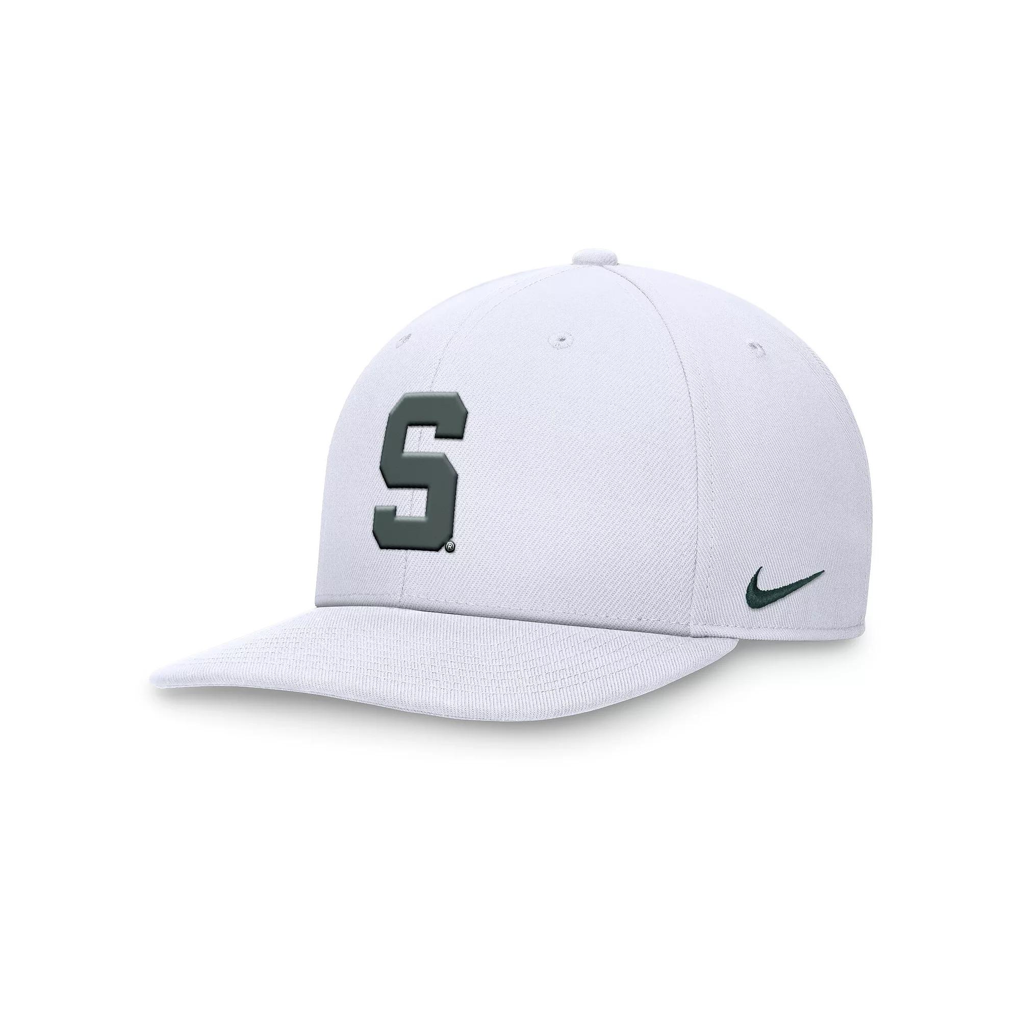 Show your Michigan State Spartans pride with this Nike Primetime Pro Snapback Hat. This stylish hat features an embroidered team logo across the front panels, making a bold statement for any fan. With its high crown and structured fit, this snapback offers a modern and comfortable look whether youre cheering from the stands or repping the Michigan State Spartans around town.Show your Michigan State Spartans pride with this Nike Primetime Pro Snapback Hat. This stylish hat features an embroidered team logo across the front panels, making a bold statement for any fan. With its high crown and structured fit, this snapback offers a modern and comfortable look whether youre cheering from the stands or repping the Michigan State Spartans around town.PRODUCT FEATURESOfficially licensedHigh CrownSnapbackStructured fitDri-FIT technology wicks away moistureFlat billImportedEmbroidered team name across rear panelsSix panels with eyeletsWipe clean with a damp clothOne size fits mostMaterial: 100% Polyester - Crown and Visor; 100% Cotton - UndervisorEmbroidered team logo across front panelsBrand: Nike Size: M/L. Color: White. Gender: male. Age Group: adult.