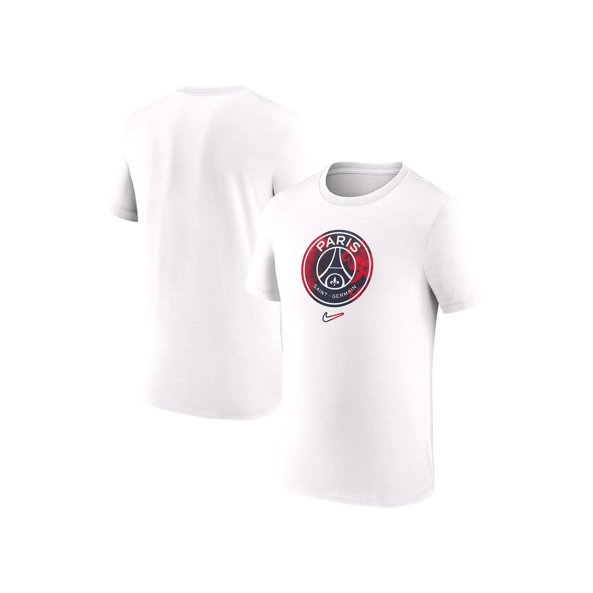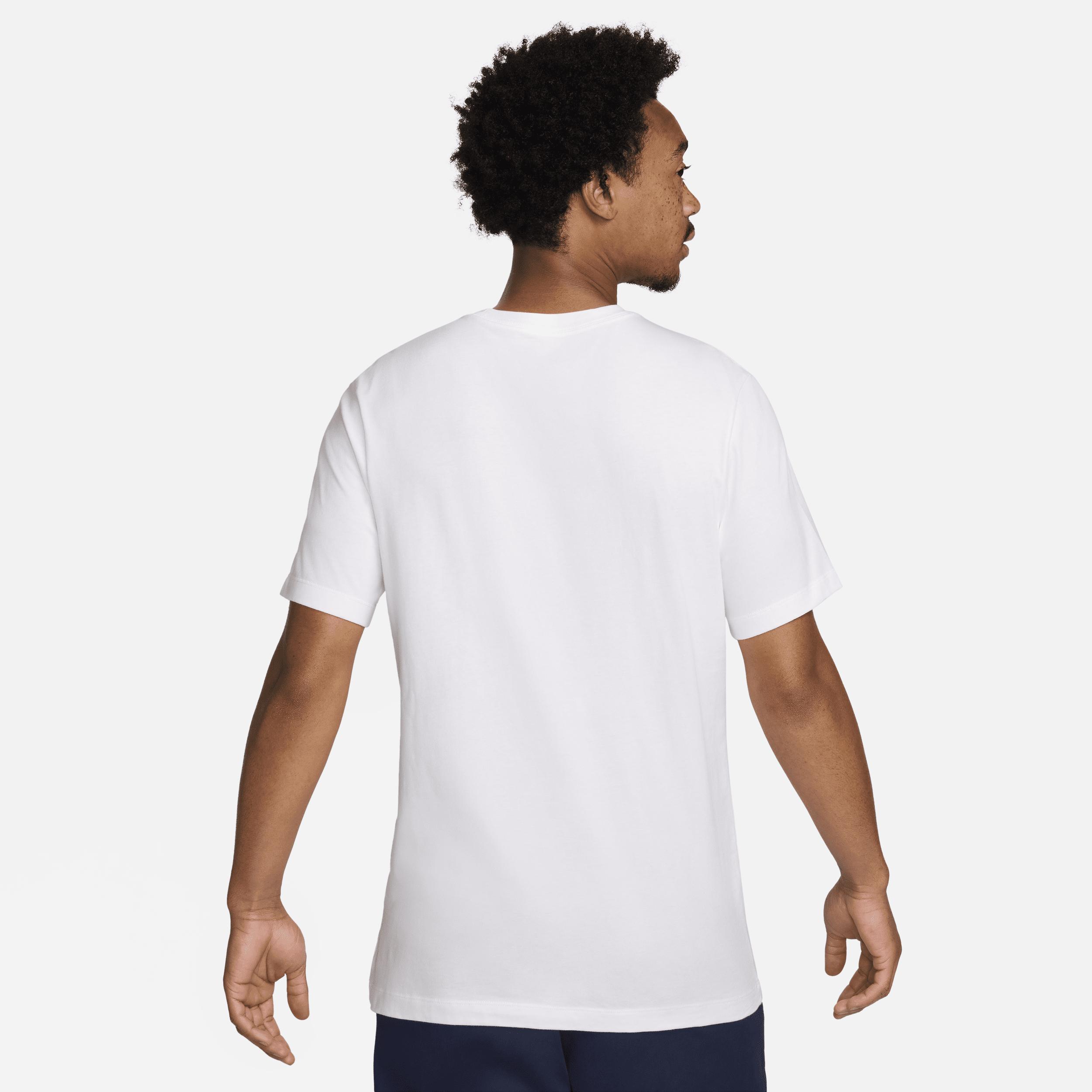 There's no mistaking where your loyalty lies when you're wearing this classic and easy-fitting Paris Saint-Germain tee. The squad crest you know and love stands prominently on the front of a soft cotton design, serving as a symbol of your undeniable support. Product Details:50-100% cotton/0-50% polyester. Material percentages may vary. Check label for actual content. Imported. Style: FV8558; Color: White; Size: 2XL; Gender: Male; Age Group: Adult | Paris Saint-Germain Men's Nike Soccer T-Shirt in White, Size: 2XL | FV8558-100