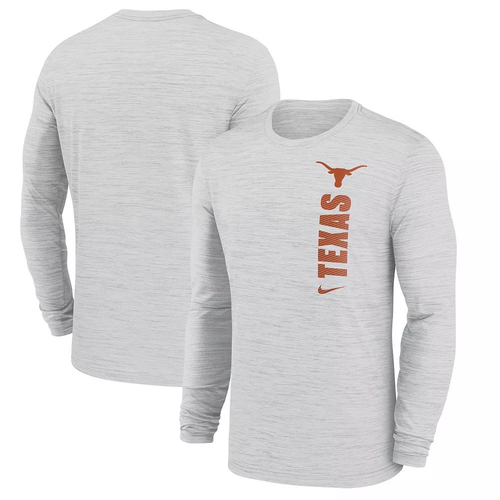 Ensure everyone sees your die-hard Texas Longhorns pride by wearing this Sideline Velocity tee. Built by Nike, this T-shirt features incredible Texas Longhorns graphics on the chest, which will solidify your stance as a truly devoted fan. The built-in Dri-fit technology will ensure you stay comfortable by wicking moisture away from your body.