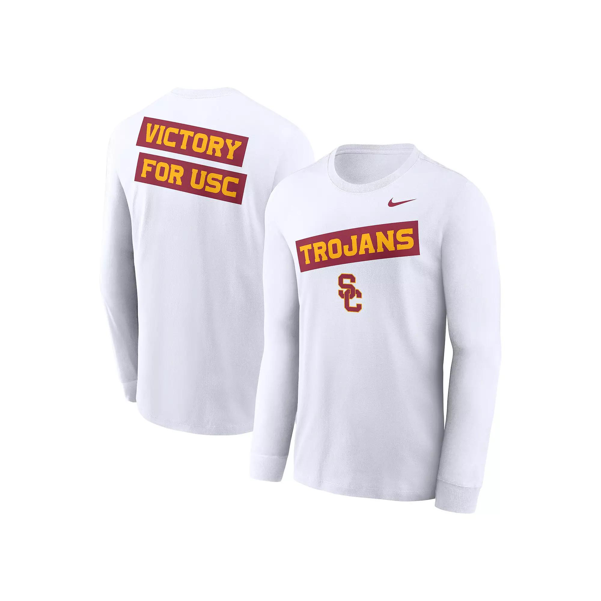 Show off your USC Trojans fandom with this Two-Hit Classic Location Long Sleeve T-Shirt by Nike. Its printed team name and logo ensure there's no mistaking your collegiate loyalty. Made from soft, breathable cotton fabric, this USC Trojans tee keeps you comfortable all game day.Show off your USC Trojans fandom with this Two-Hit Classic Location Long Sleeve T-Shirt by Nike. Its printed team name and logo ensure there's no mistaking your collegiate loyalty. Made from soft, breathable cotton fabric, this USC Trojans tee keeps you comfortable all game day.PRODUCT FEATURESCrew neckMaterial: 100% CottonMachine wash, tumble dry lowTeam details printed on the front and backLong sleeveScreen print graphicsBrand: NikeOfficially licensedImported Size: 2XL. Color: White. Gender: male. Age Group: adult.