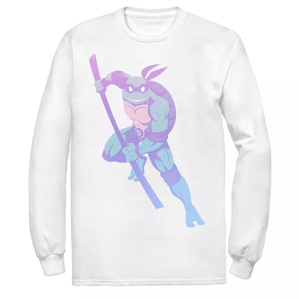 Men's Ninja Turtles Donatello Ombre Gradient Long Sleeve Tee, Size: XL, White