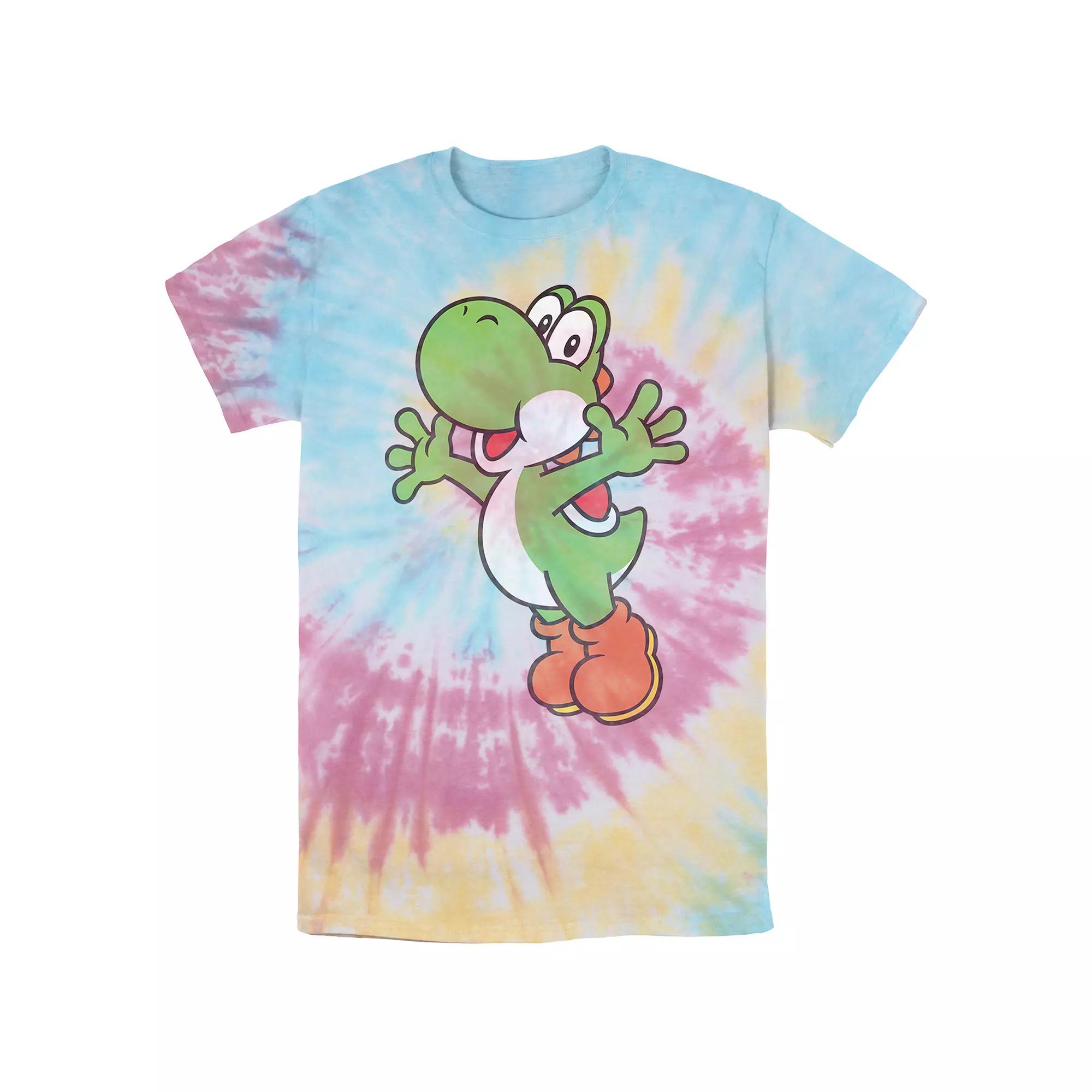 Men's Nintendo Super Mario Yoshi Running Tie Dye Graphic Tee, Size: Small, Blue Pink Light Yellow