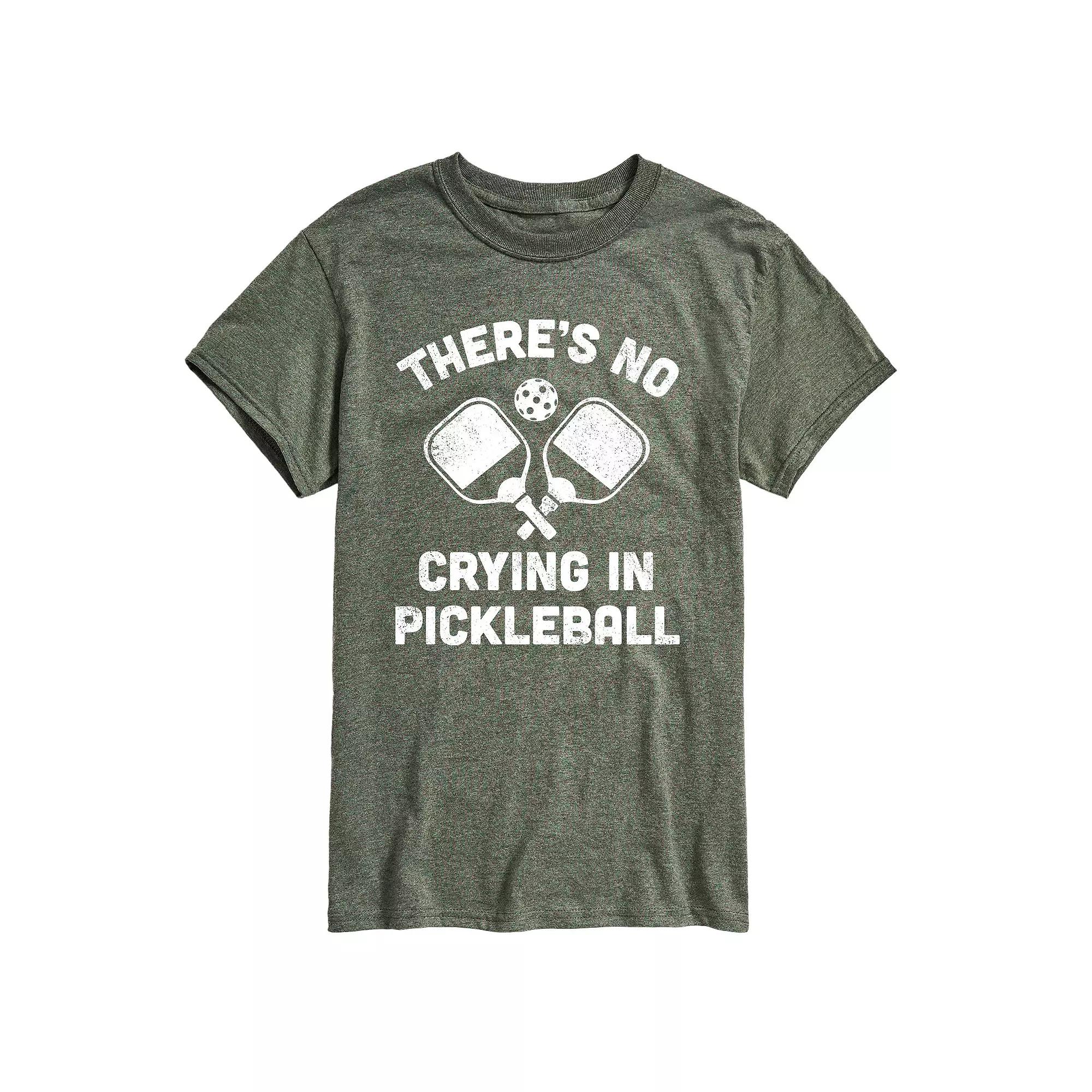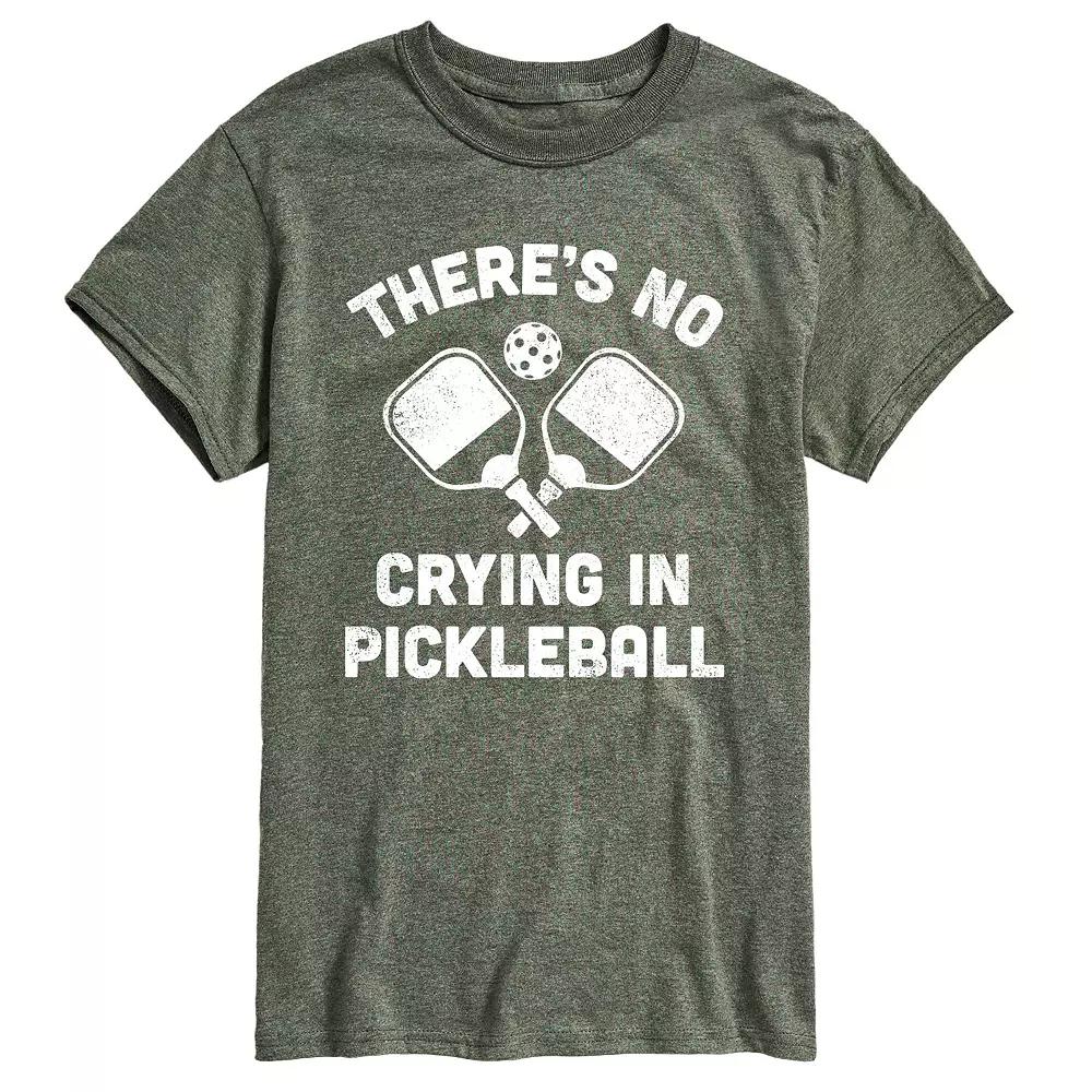 Heather Military Green Theres No Crying Pickleball Tee - Men. Breathable cotton-blend tee featuring a personality-packed graphic front and center.Full graphic text: Theres no crying in pickleball.60% cotton / 40% polyesterMachine wash; tumble dryImported, screen printed in the USA