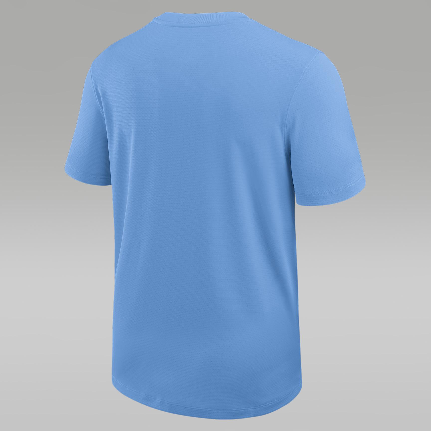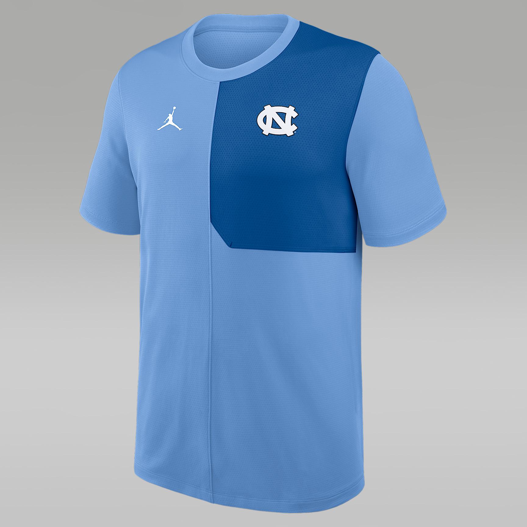 This North Carolina Sideline Coach Top has sweat-wicking technology and UV protection to help keep you dry and comfortable. Its mesh paneling on the left upper front helps deliver a lightweight, breathable feel. Benefits:Nike Dri-FIT technology moves sweat away from your skin for quicker evaporation, helping you stay dry and comfortable. This product provides UVA and UVB protection from the sun only in the areas covered by the garment. To protect exposed areas, the use of good quality sunscreen is recommended. Product Details:100% polyester. Machine wash. Imported. Style: 0JB20DWWNCN; Color: Light Blue; Size: 2XL; Gender: Male; Age Group: Adult | North Carolina Sideline Coach Men's Jordan Brand Dri-FIT College Top in Blue, Size: 2XL | 0JB20DWWNCN-2QD