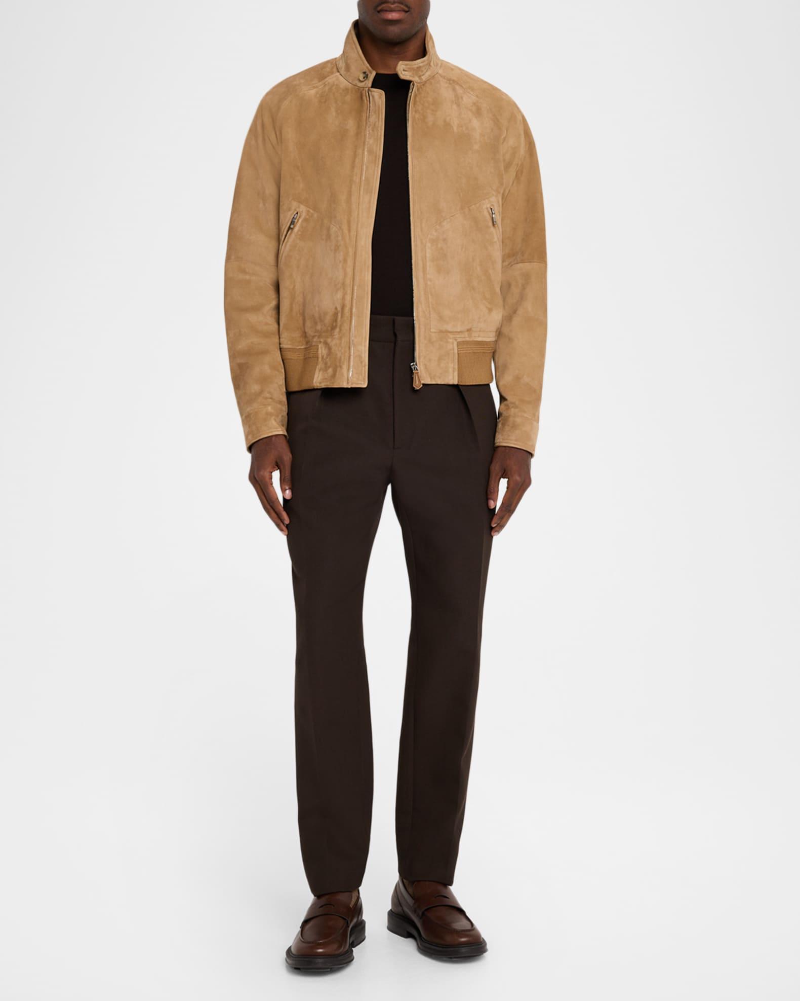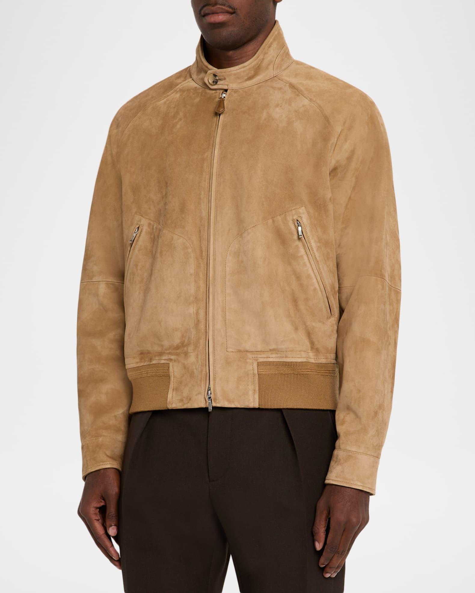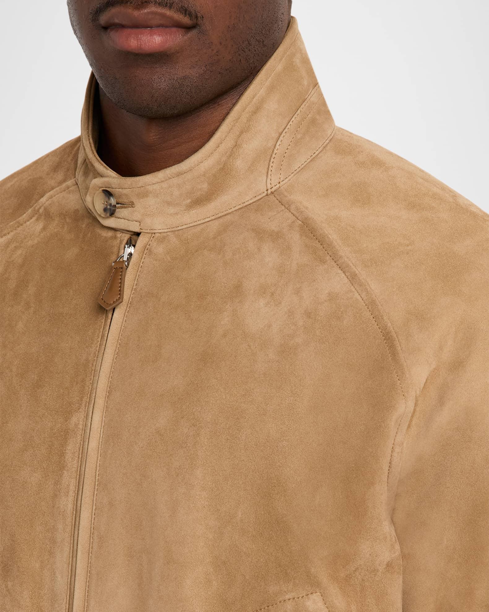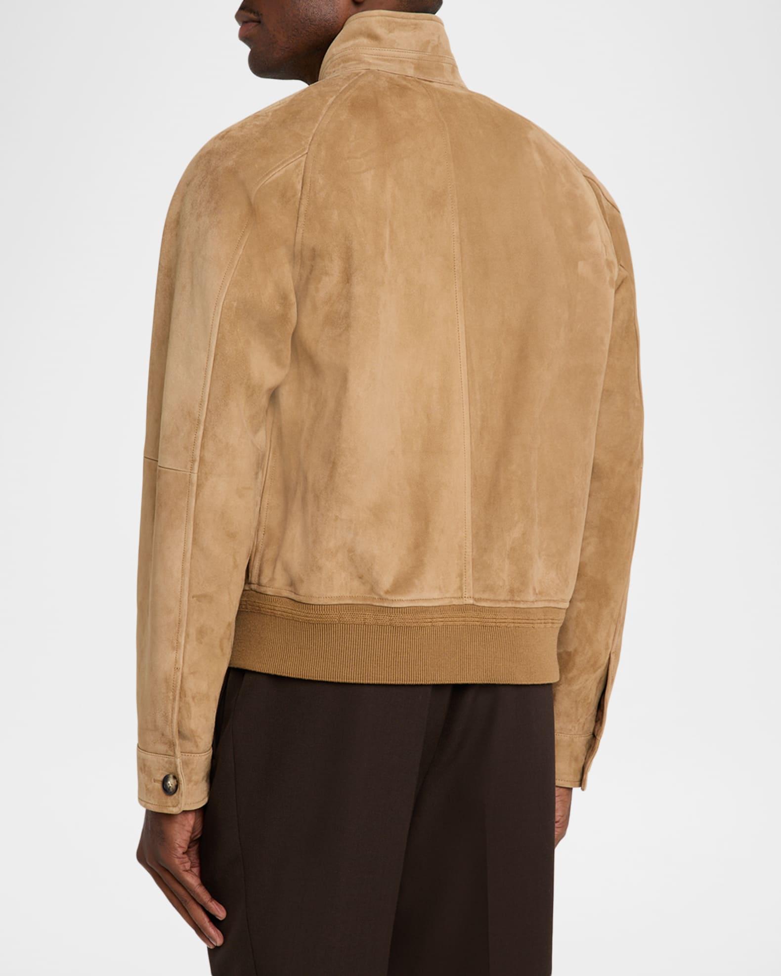 The Loro Piana lightweight bomber jacket is crafted from soft, lambskin suede with a matte finish Stand collar with button closure Long sleeves Button cuffs Ribbed cuffs and hem Regular fit Zip front closure Leather Unlined Professional cleaning recommended Made in Italy