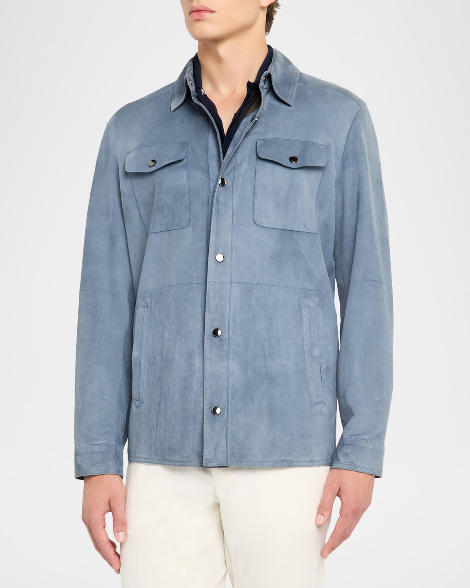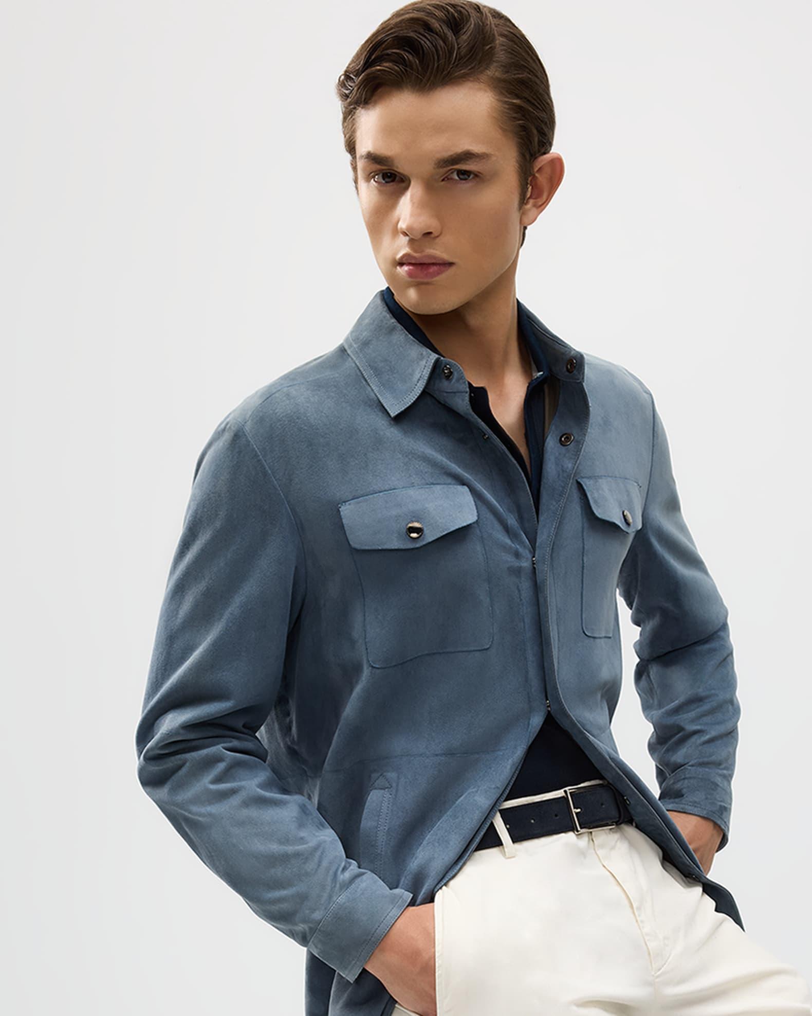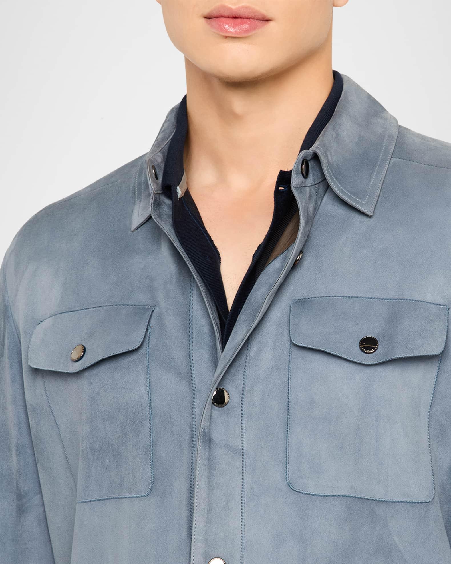 Men's Nuvola Suede Snap-Front Overshirt