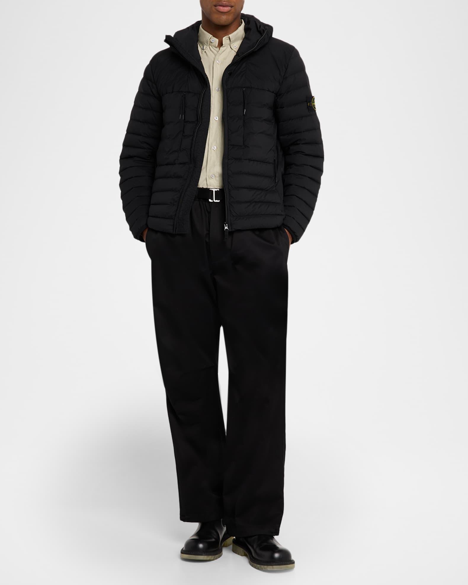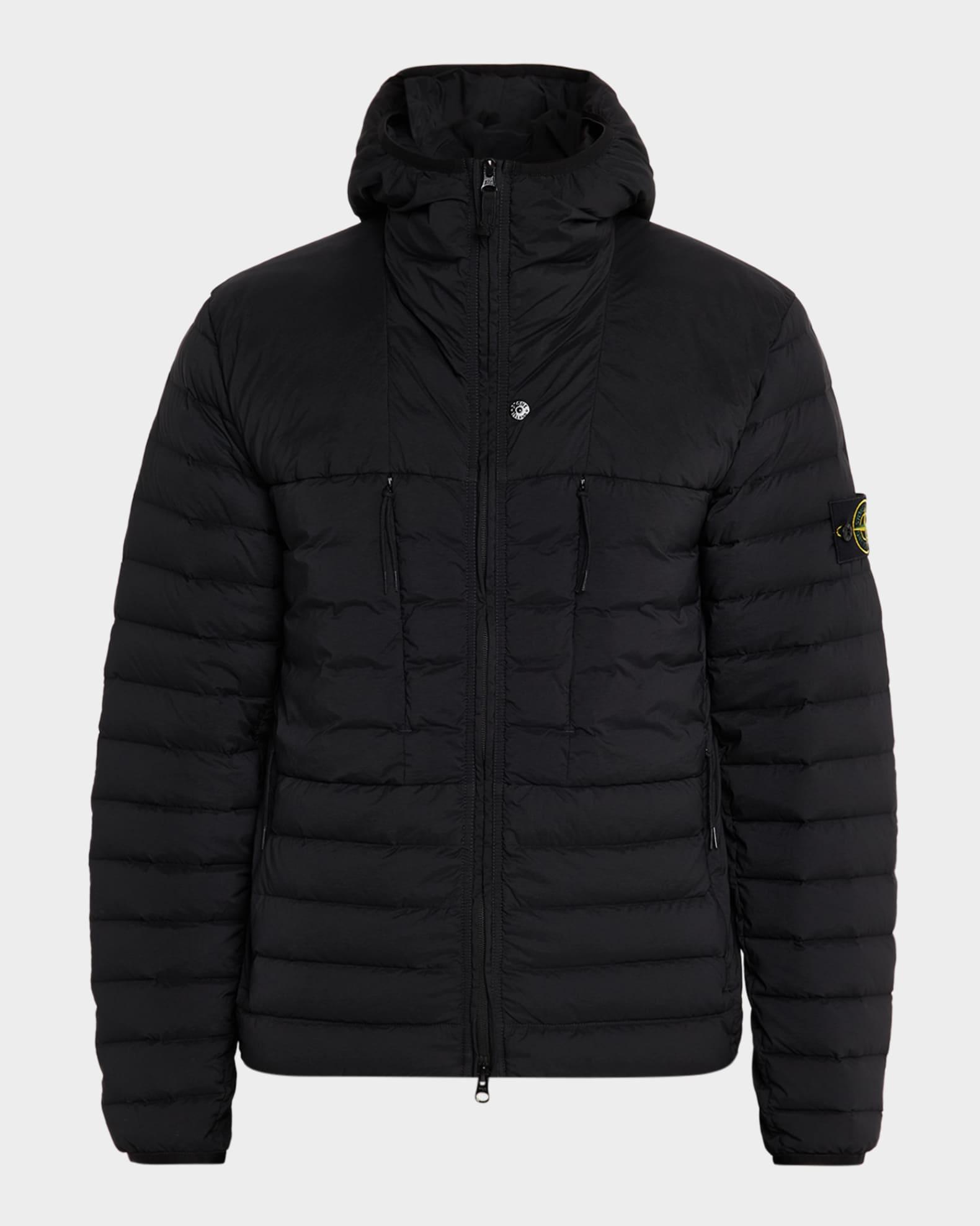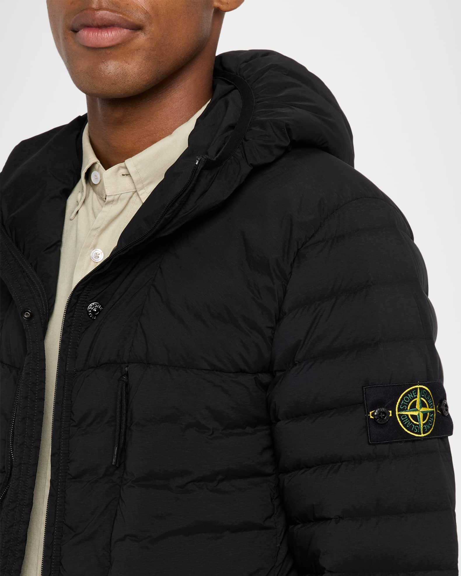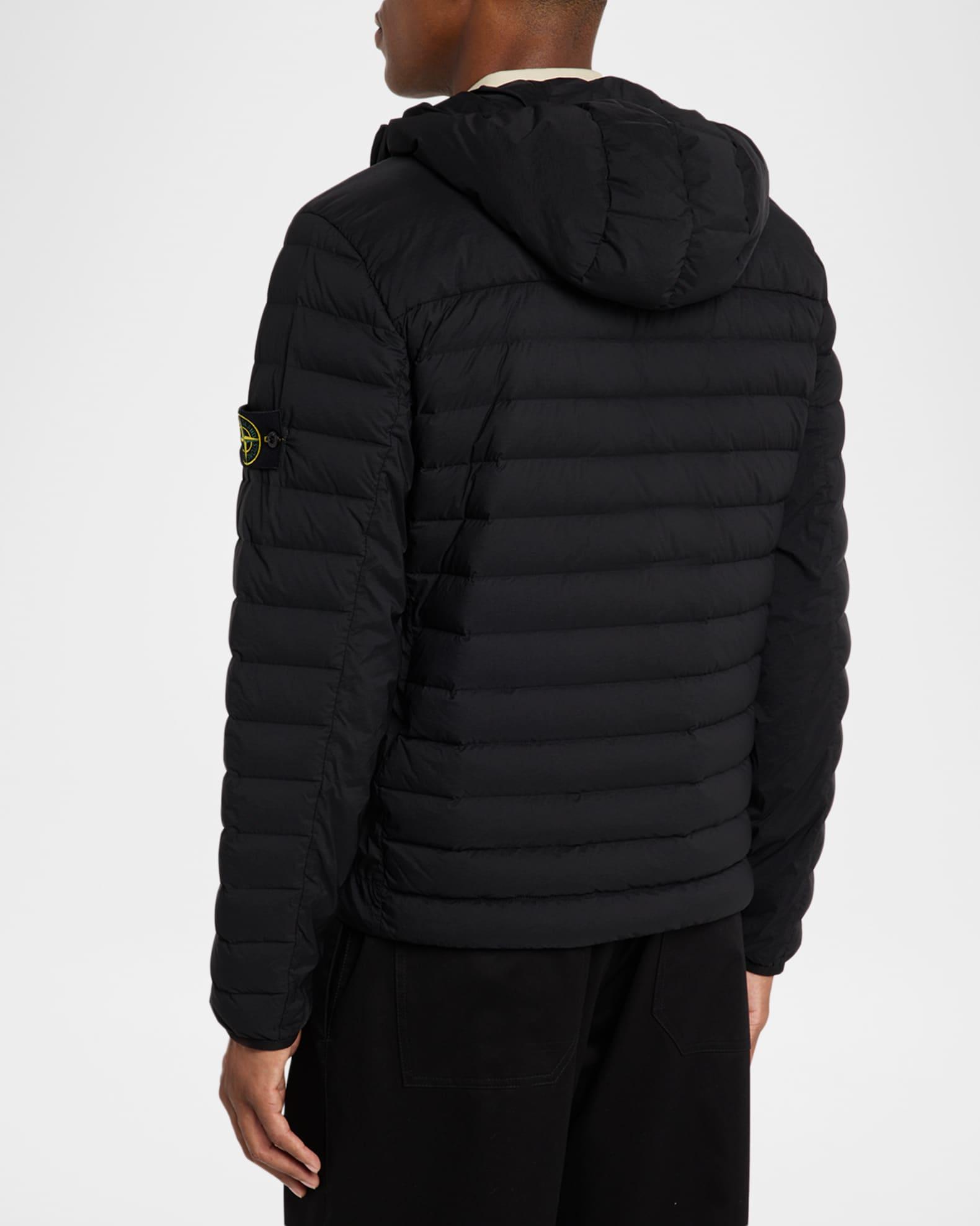 The seamless tunnels used to craft this Stone Island puffer ensure an even distribution of feathers. The down/feather fill provides warmth and comfort, while the anti-drop finish protects from water seeping through the jacket. Drawstring hood Two-way zipper Long sleeves; elastic cuffs Compass logo on the left arm Four pockets with zippers Drawcord at the hemline Nylon/polyamide/elastane/spandex Machine wash cold Imported