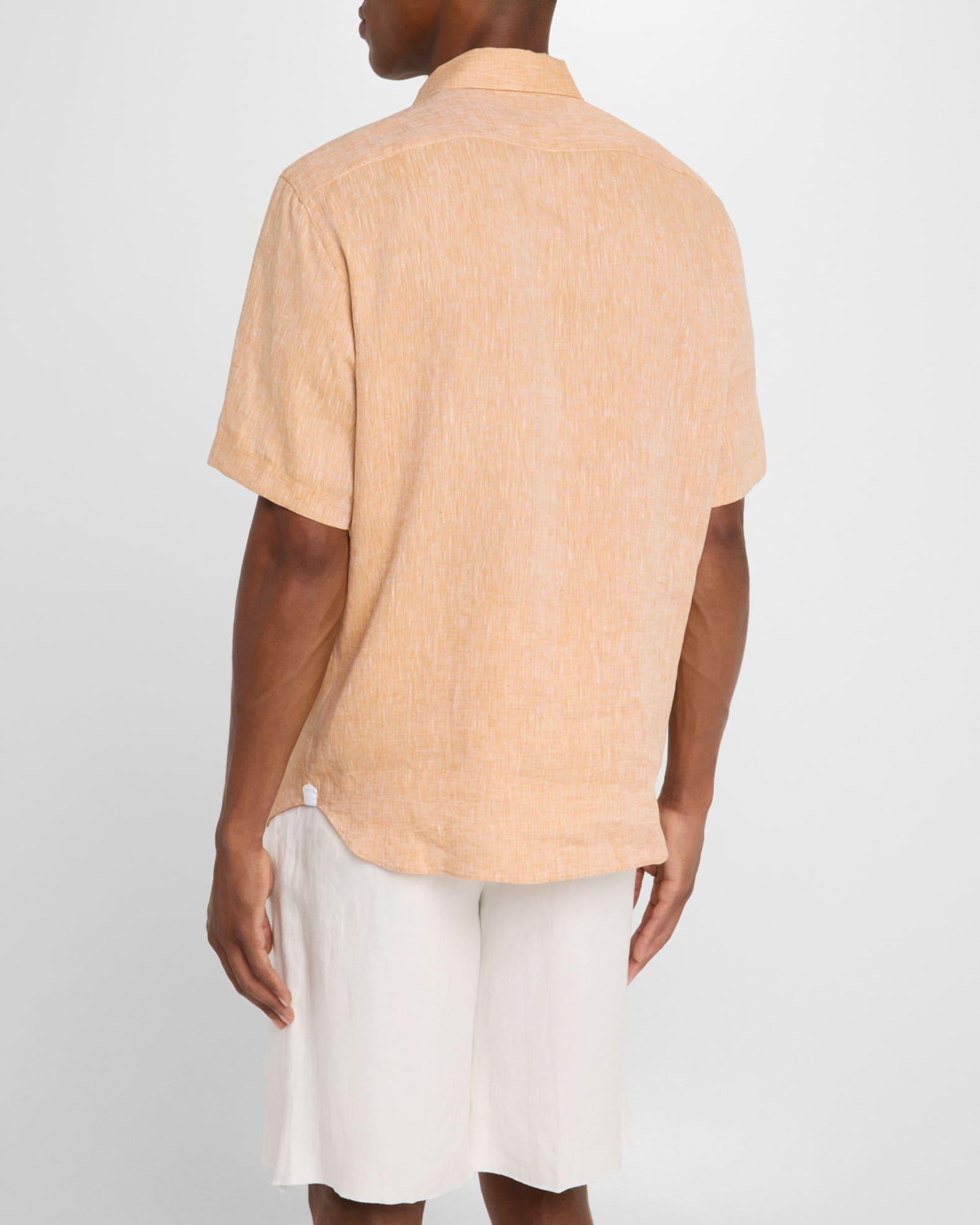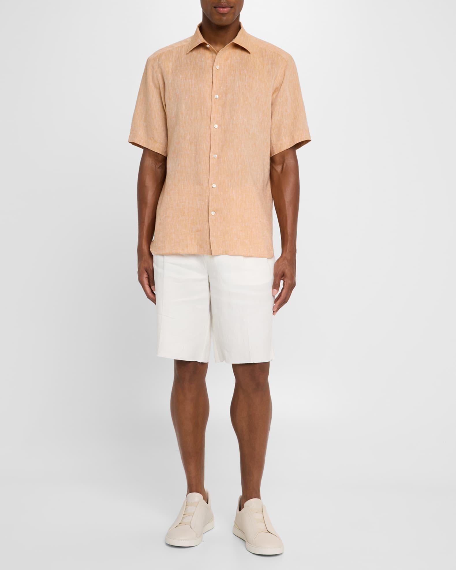 ZEGNA casual button-down shirt in Oasi Lino for a breathable finish Oasi Lino is crafted exclusively from European-grown flax fibres that are certified as 100% traceable, it follows in the footsteps of Zegna's founder, who envisioned a vertically integrated system of producing textiles. Point collar Button placket Short sleeves Back yoke Shirttail hem Linen Dry clean Made in Italy
