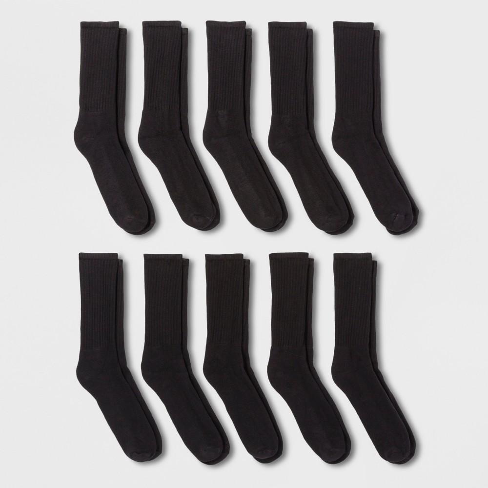 Men's Odor Resistant Crew Socks 10pk - Goodfellow & Co™ Black 6-12: Reinforced Heel & Toe Product Image