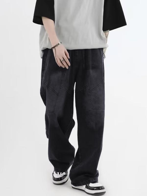Men's Ombre Elastic Waist Drawstring Loose Jeans