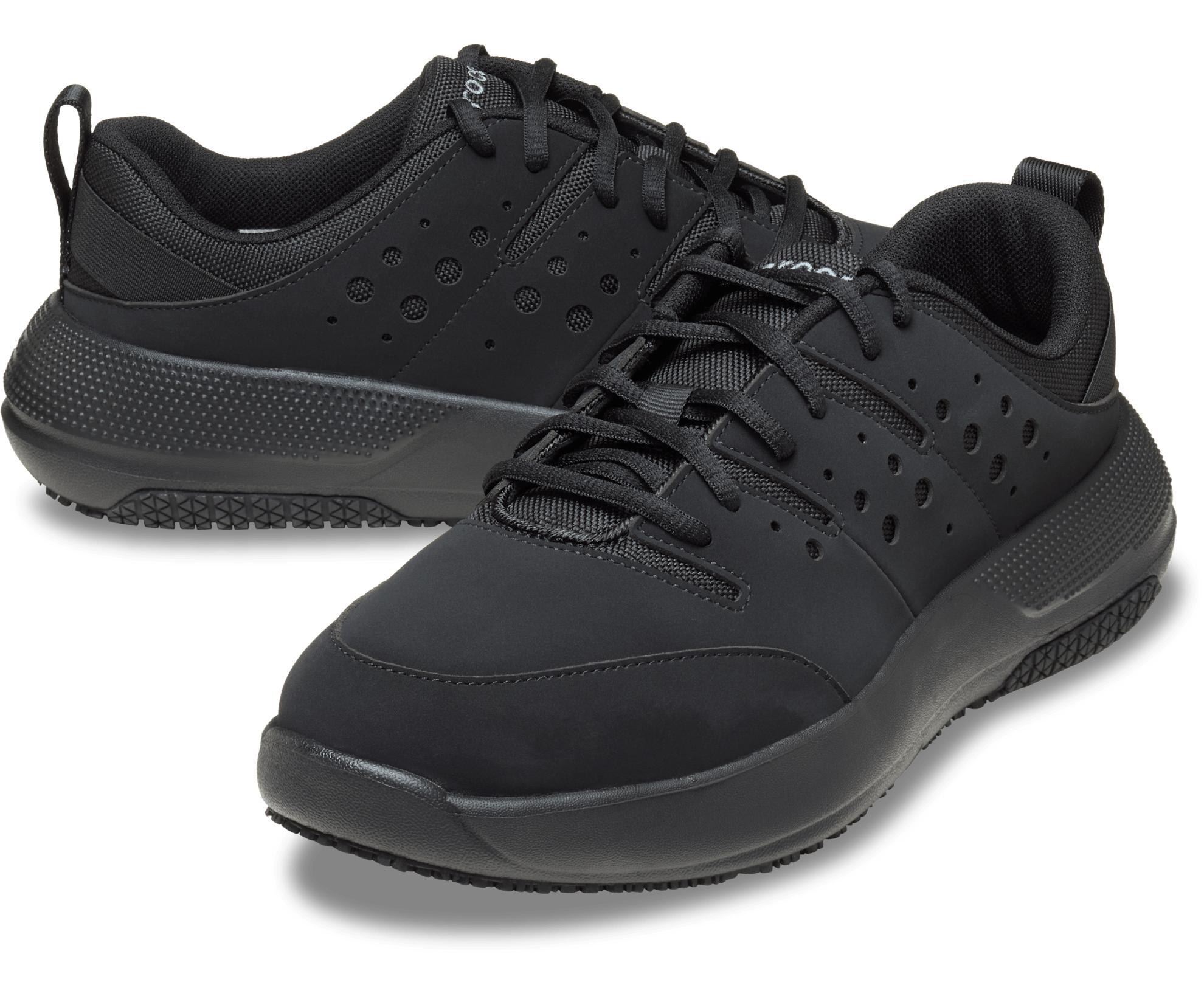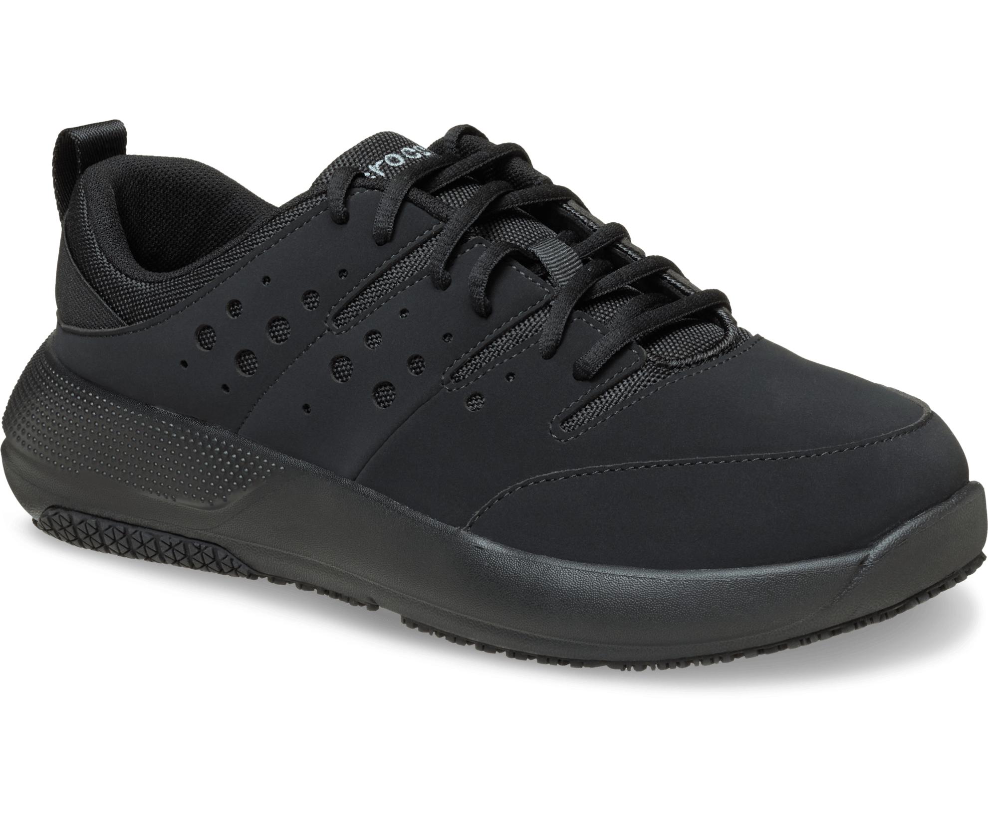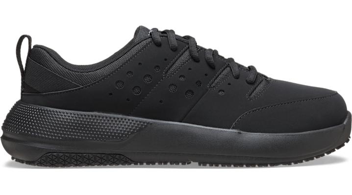 Our latest style to join the Crocs at Work™ Collection, the On the Clock Sneaker, was designed with hard workers like you in mind. This durable shoe features breathable, easy to clean uppers and premium LiteRide™ footbeds that deliver support and cushioning where your feet need it most. And because we know spills happen, our tried-and-true Crocs Lock™ slip-resistant tread ensures maximum safety in slippery conditions. Wide version. Men's On the Clock Work Sneaker Wide Details: Wider, gender-specific lasts to create the best fit experience Available in wide and half sizes Guarded mesh breathable upper that cushions around the foot Easy to clean, synthetic Nubuk overlay provides protection from messes Crocs Lock™ slip-resistant tread LiteRide™: Revolutionary. Sink-in softness. Innovative comfort. ASTM F2913-11 tested, CE Certified Meets or exceeds EN ISO 20347:2012, OB, SRC