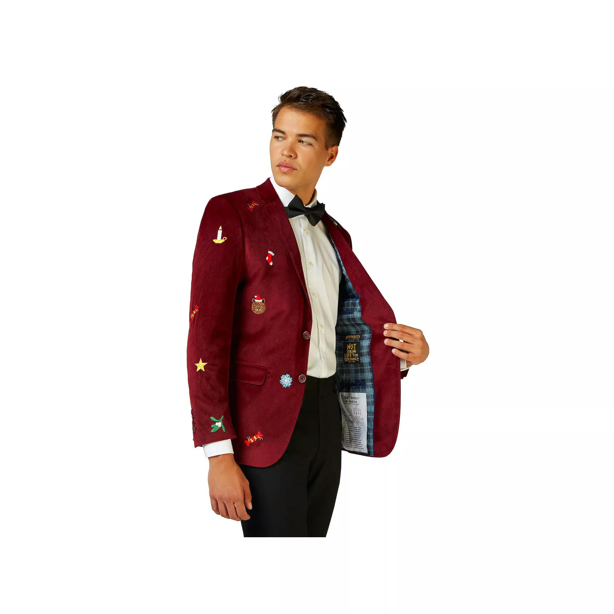 OppoSuits Deluxe Blazers For Men –Christmas Icons Deep Burgundy – The Perfect Mix Of Stylish, Fun and High Quality Jackets – Size US 38 | Opposuits Men's Deluxe Blazer Christmas - X-Mas Icons, Red, 38