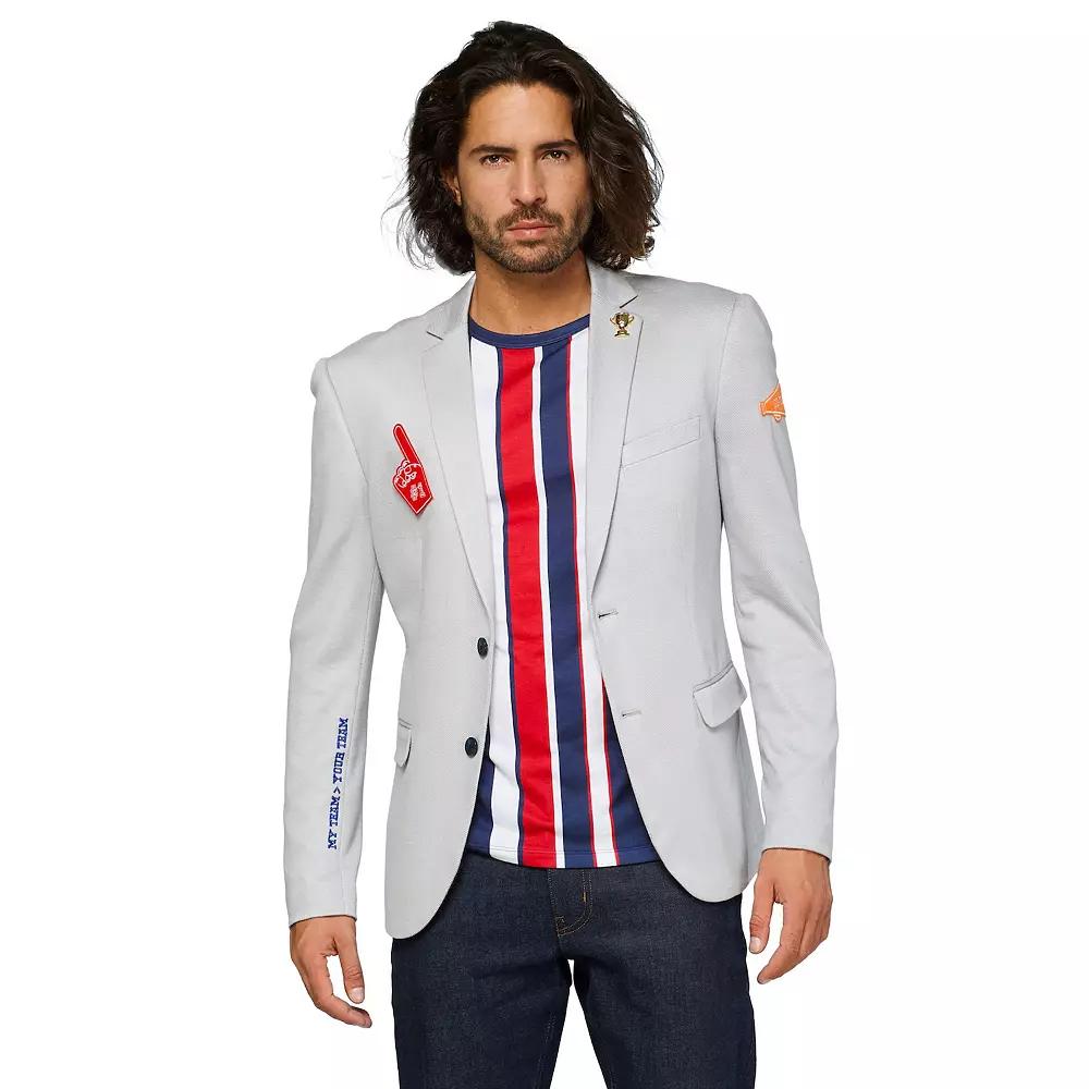 Make a bold statement in this mens OppoSuits blazer. Make a bold statement in this mens OppoSuits blazer. Button front 4-pocket Long sleevesFIT & SIZING Modern fitFABRIC & CARE Polyester, rayon, spandex, cotton, linen Machine wash - delicate Imported Size: 46 - Regular. Color: Blue. Gender: male. Age Group: adult.