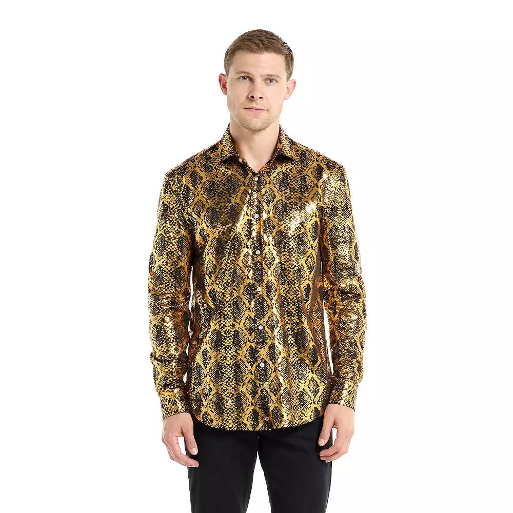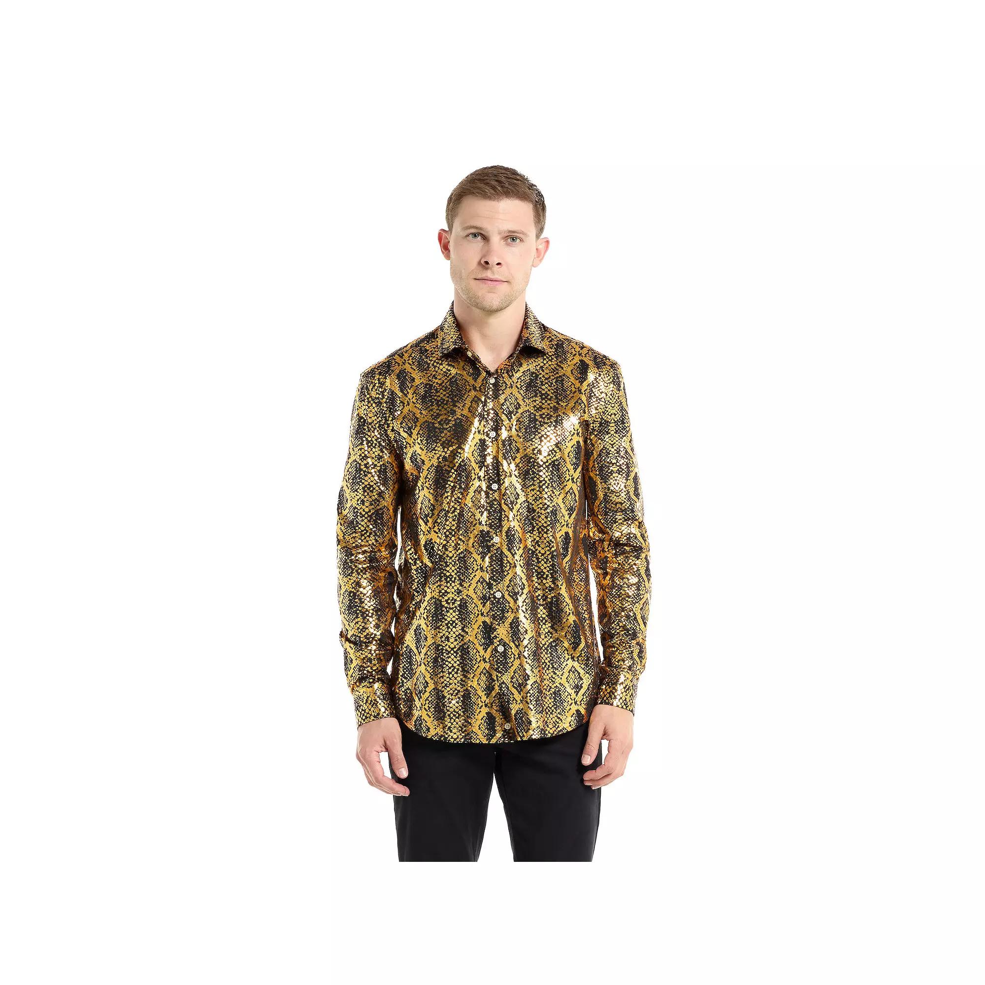Slide your way across the dance floor with this eye-catching button-down from OppoSuits. Click on this MEN'S GUIDE to find the perfect fit and more!Slide your way across the dance floor with this eye-catching button-down from OppoSuits. Click on this MEN'S GUIDE to find the perfect fit and more!FIT & SIZING Button-front closure Collared neckline Long sleeve Slim fitFABRIC & CARE 100% Polyester Machine wash Imported Size: 4XL. Color: Gold. Gender: male. Age Group: adult. Pattern: snake print.
