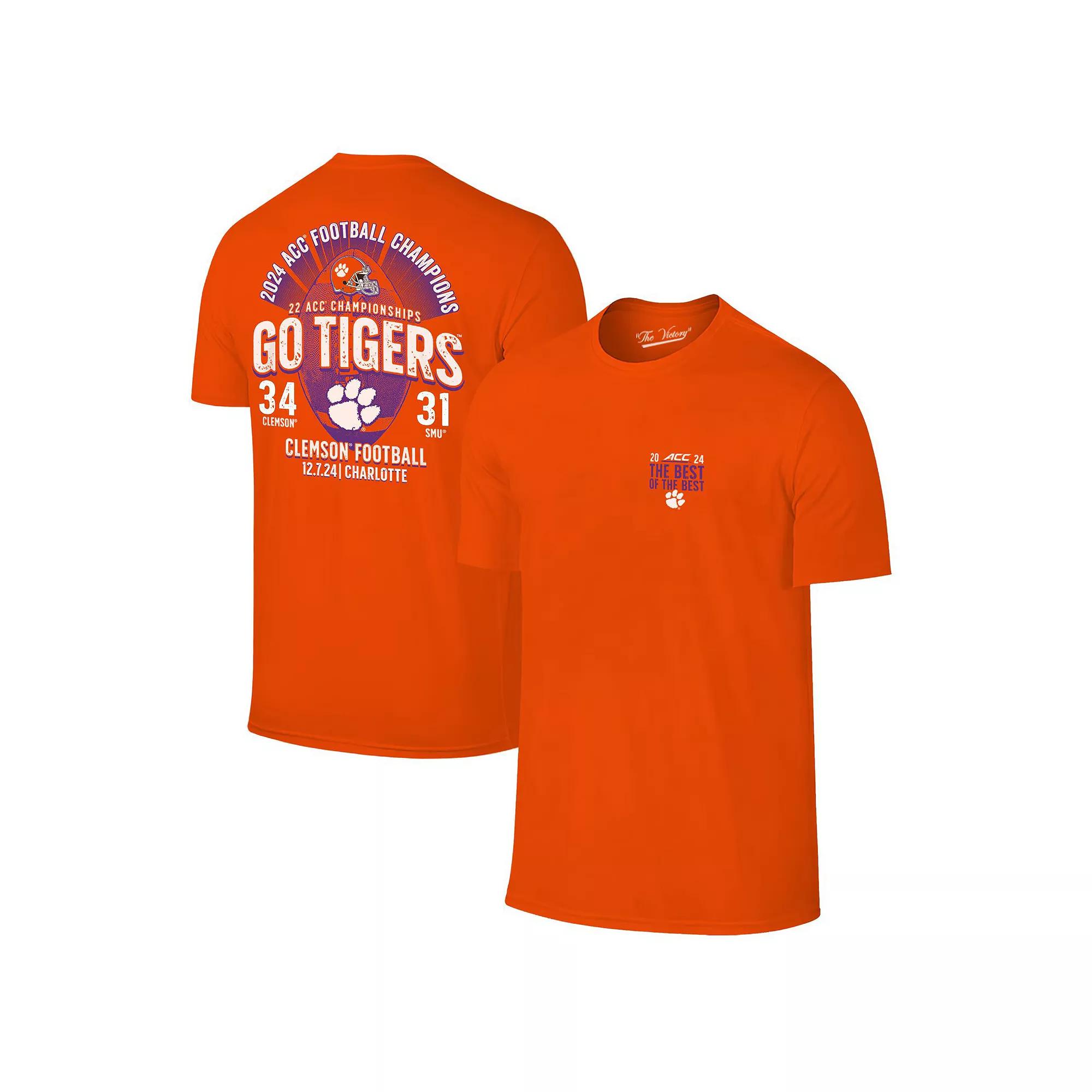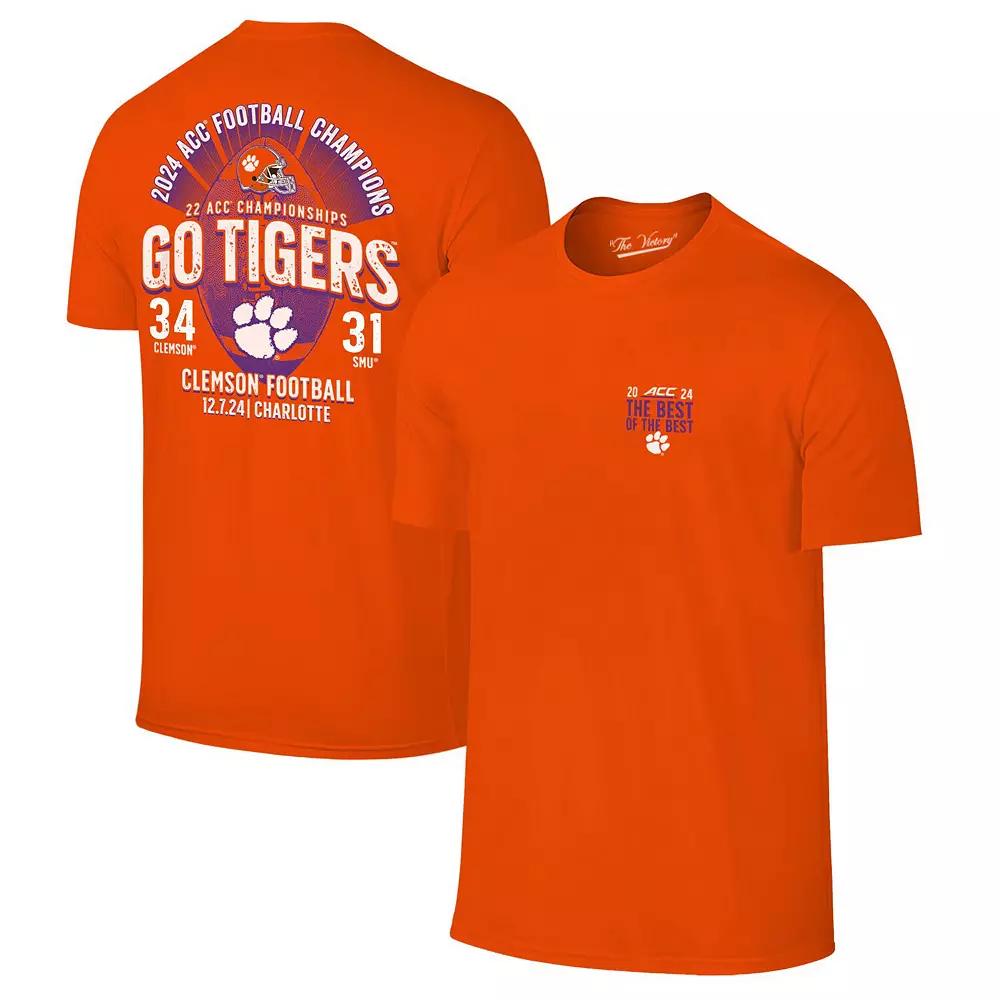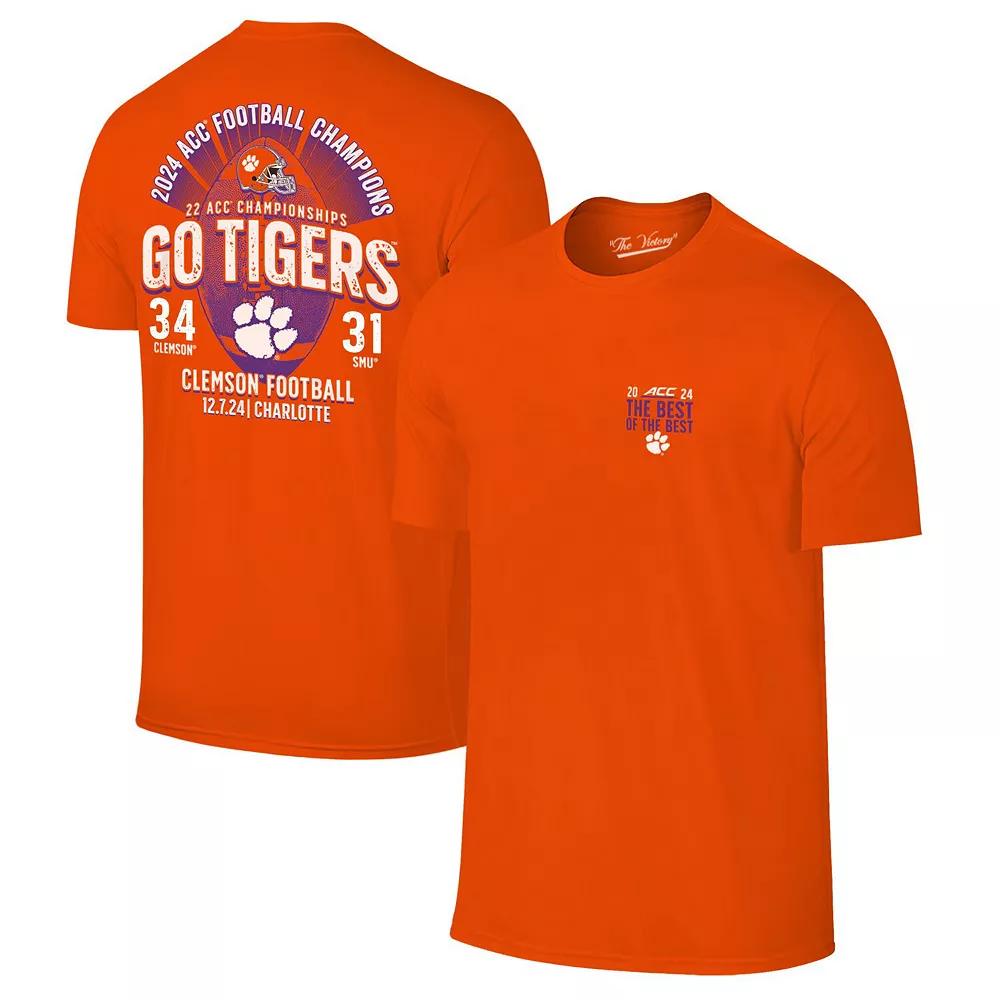 Your Clemson Tigers went up against the best of the best and came away as 2024 ACC Football Conference Champions. Celebrate your team's victory with this Score T-Shirt. The commemorative graphics will ensure you remember this victory for years to come.Your Clemson Tigers went up against the best of the best and came away as 2024 ACC Football Conference Champions. Celebrate your team's victory with this Score T-Shirt. The commemorative graphics will ensure you remember this victory for years to come.PRODUCT FEATURESBrand: The VictoryMachine wash, tumble dry lowCrew neckMaterial: 100% CottonScreen print graphicsImportedOfficially licensedShort sleeve Size: 3XL. Color: Orange. Gender: male. Age Group: adult.