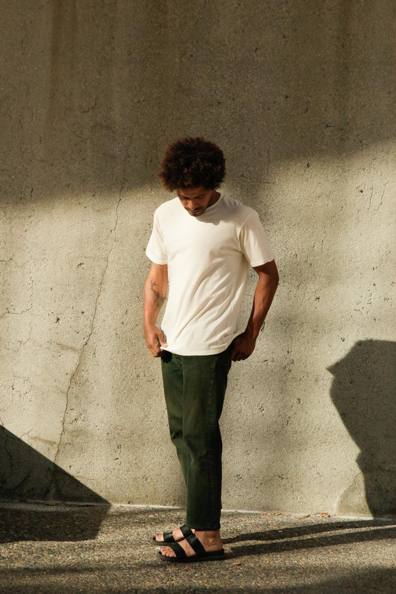 Natural version of our modern men’s crew. Made to be your daily wearer. Built with 4.3 ounce 100% organic cotton jersey, this fabric is the perfect weight and ideal for tee shirts. Soft, flexible feel on the body with rib collar for a clean look. Fits true to size.Origins: Organic cotton grown in USA, yarn spun and knit in USA, sewn in the San Francisco Bay Area.