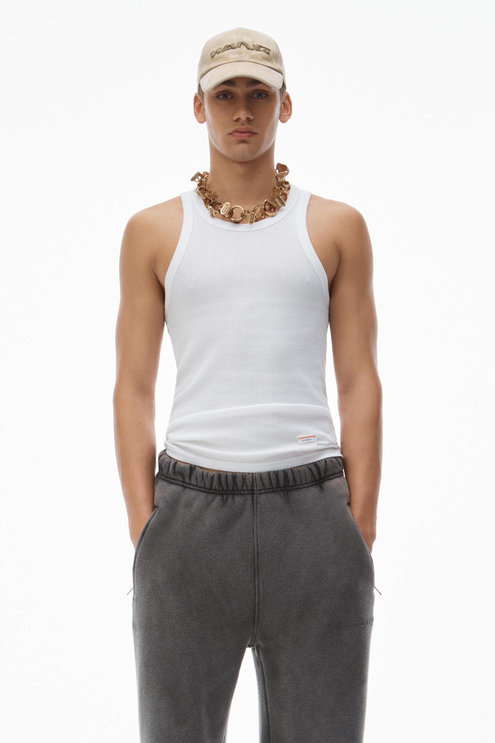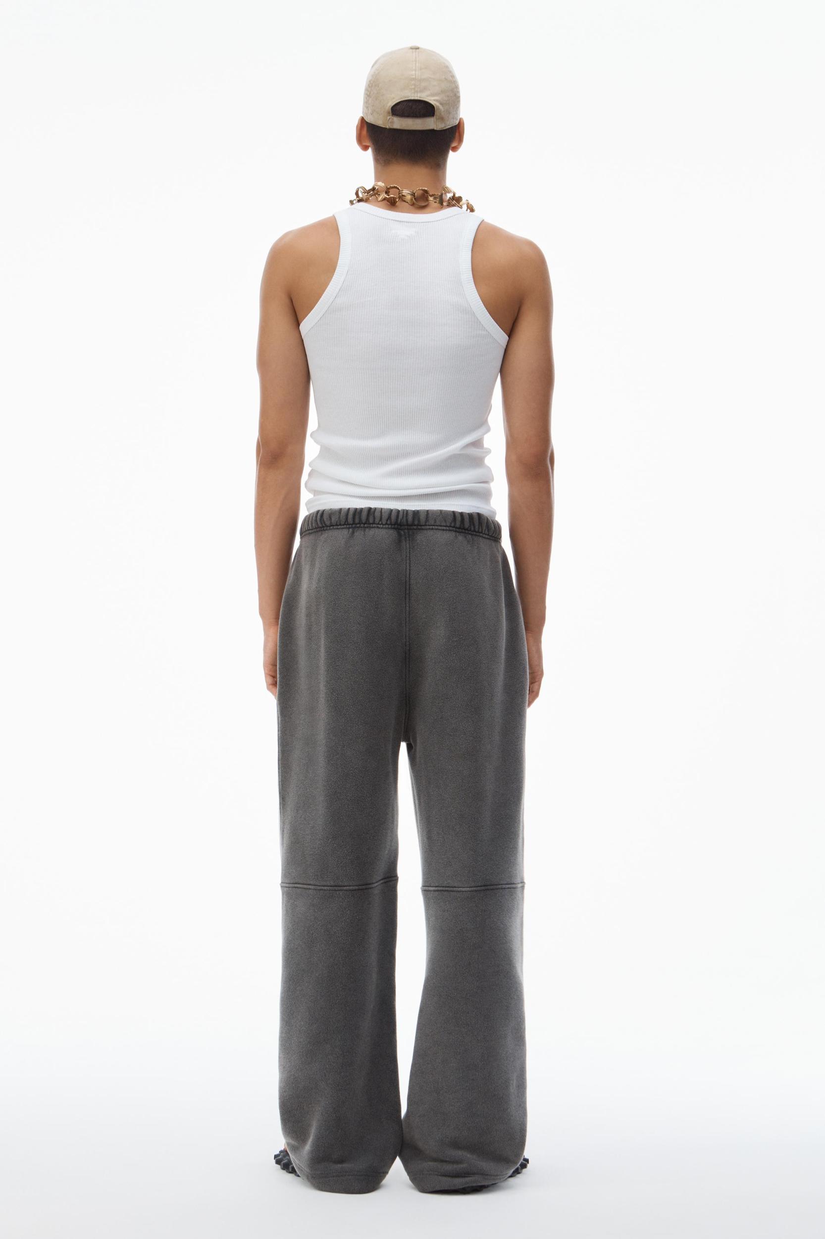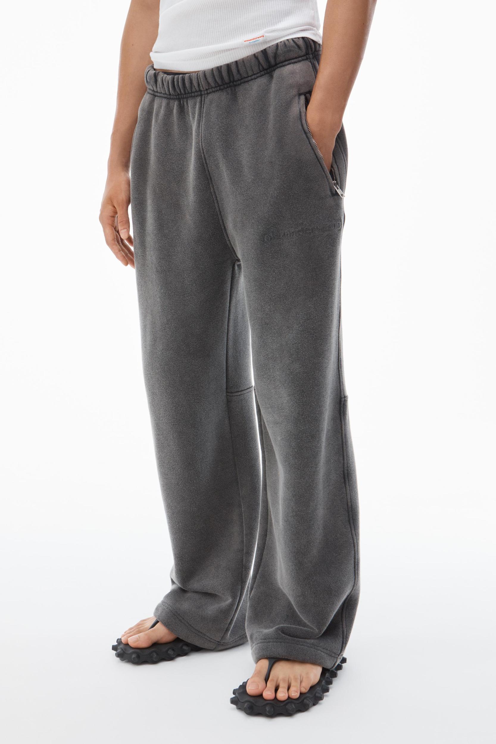 This men's sweatpant features a vintage grey effect wash with a logo at the pant leg.