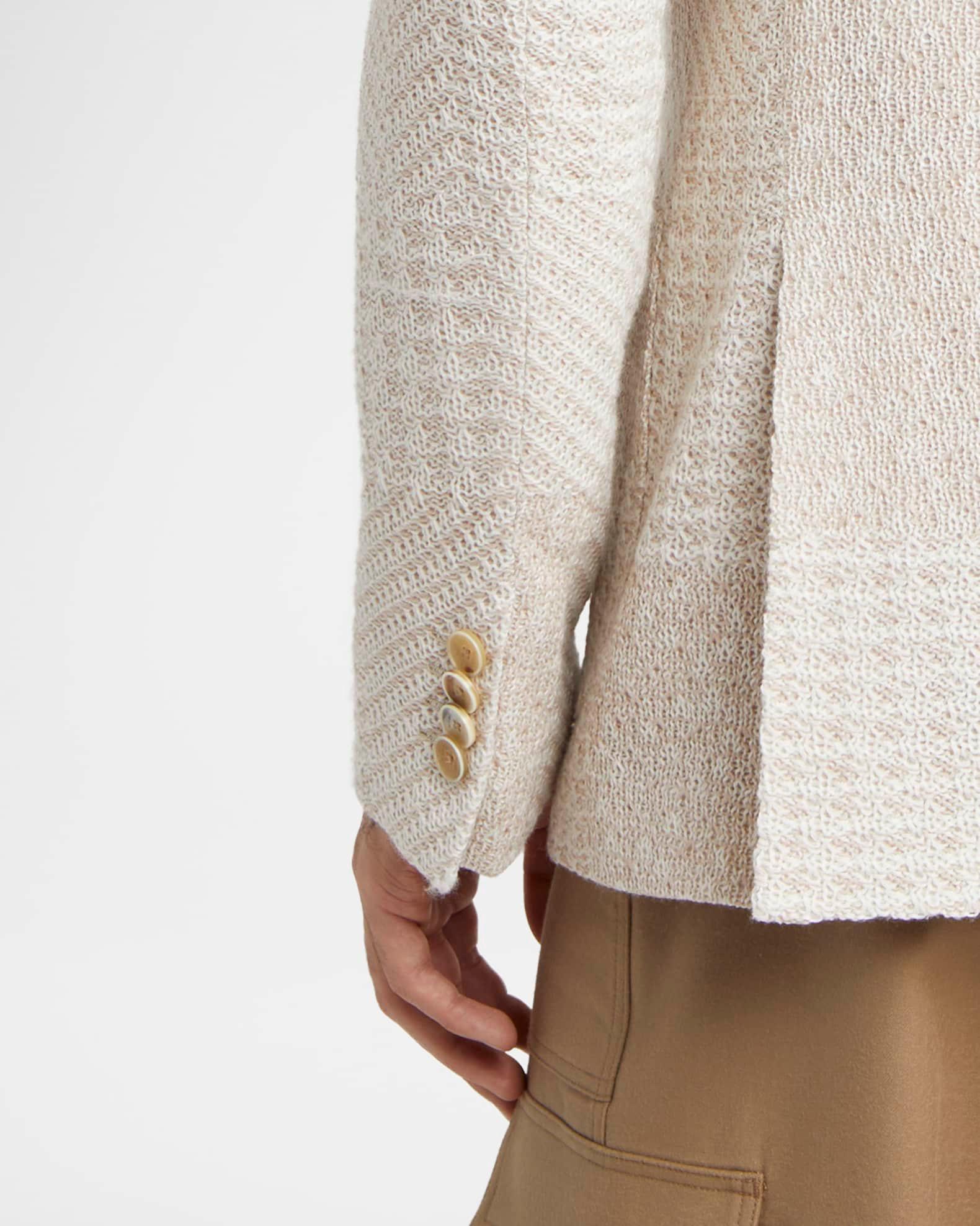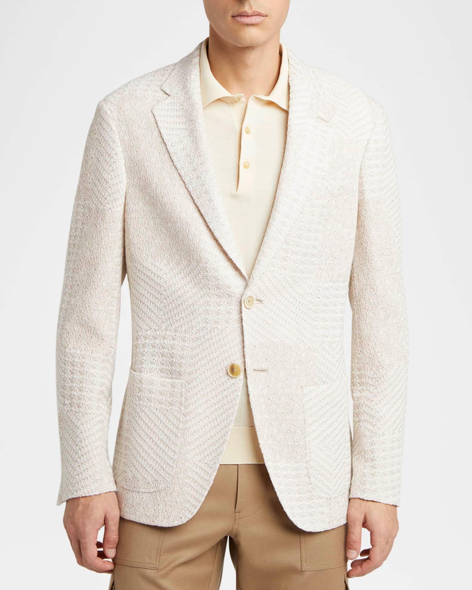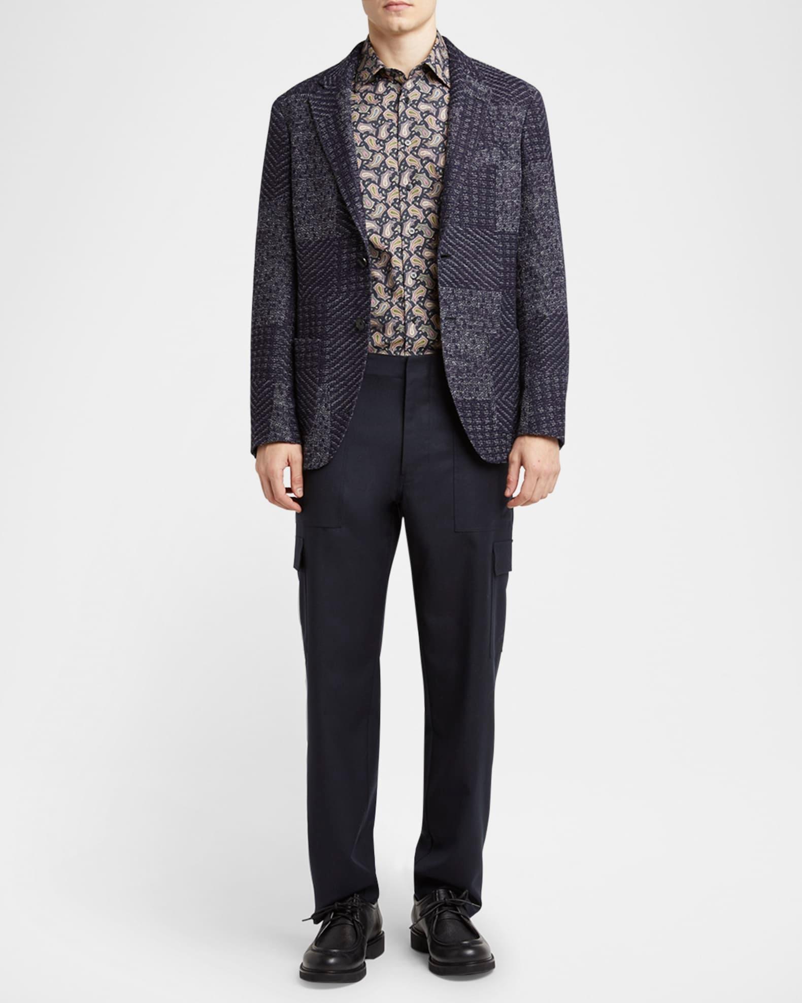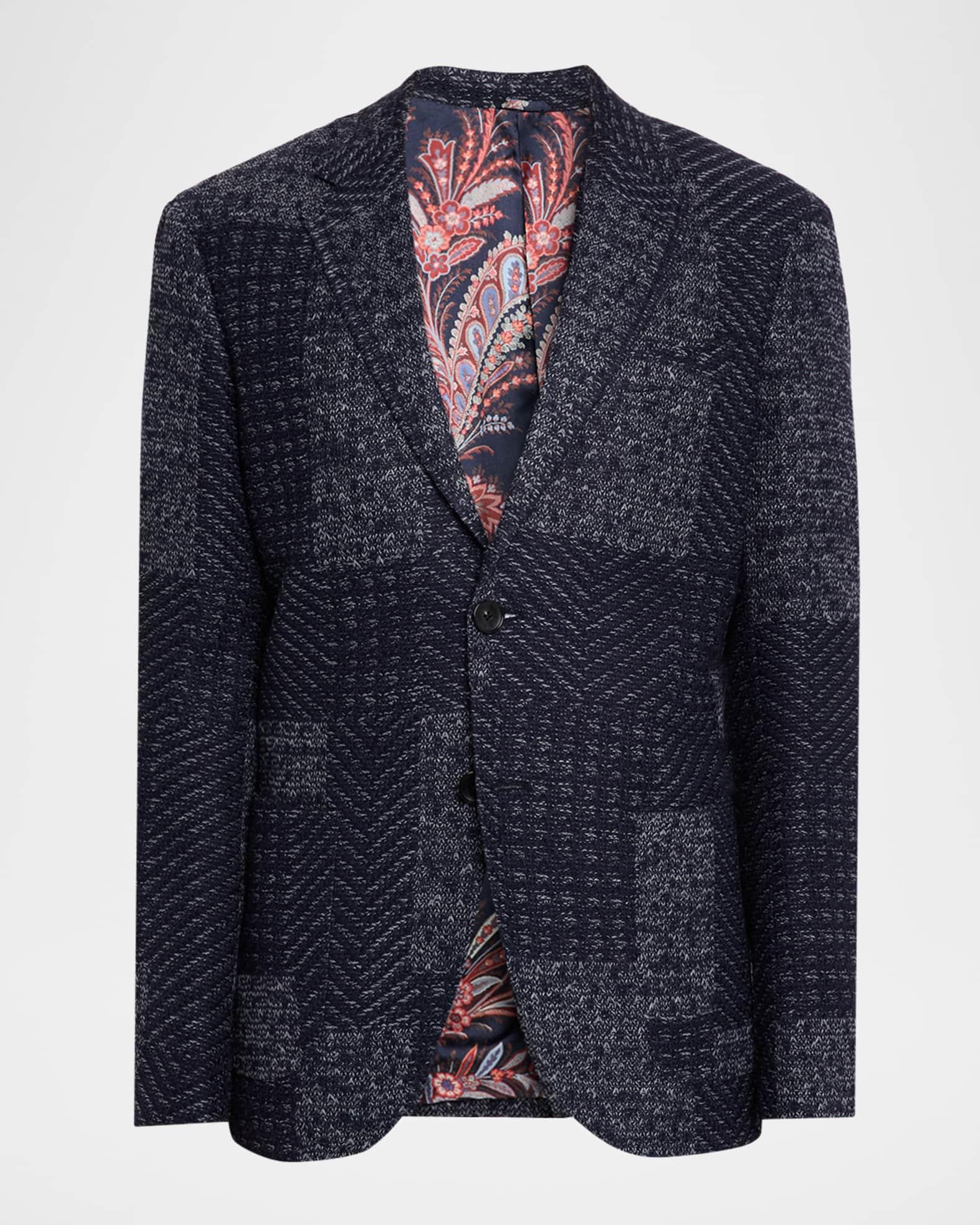 Etro sport coat defined by a subtle crosshatch knit patchwork design Paisley-printed interior Notched lapels Two-button front Barchetta chest pocket Hip patch pockets Long sleeves Four-button cuffs Double-vented back Wool/acrylic Lining: Viscose/polyester Professional cleaning recommended Made in Italy