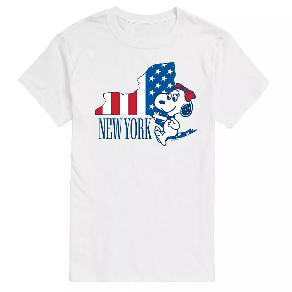 No matter where your travels lead you, youll arrive in style wearing this Mens Peanuts Belle New York Americana Graphic Tee. No matter where your travels lead you, youll arrive in style wearing this Mens Peanuts Belle New York Americana Graphic Tee. FEATURES Crewneck Short sleeveFABRIC & CARE Solid Color: Cotton ; Heather Colors: Cotton/Polyester Machine wash Imported Color: White. Gender: male. Age Group: adult.