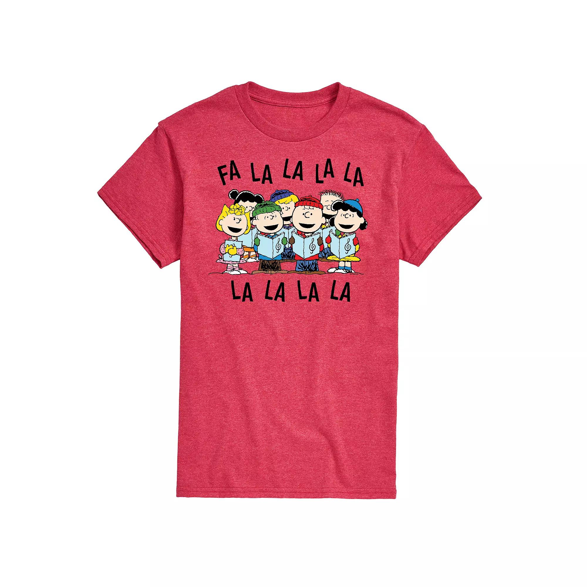 Sing some carols in this fun mens Peanuts Fa La La tee. Sing some carols in this fun mens Peanuts Fa La La tee. Crewneck Short sleevesFABRIC & CARE Cotton, polyester Machine wash Imported Color: Red. Gender: male. Age Group: adult. Pattern: Graphic.