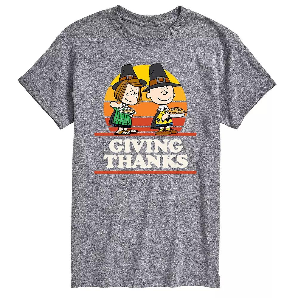 Give thanks for the small things this Thanksgiving, in a mens Peanuts tee. Give thanks for the small things this Thanksgiving, in a mens Peanuts tee. Crewneck Short sleevesFABRIC & CARE Cotton, polyester Machine wash Imported Color: Med Grey. Gender: male. Age Group: adult. Pattern: Graphic. Material: Cotton Blend.