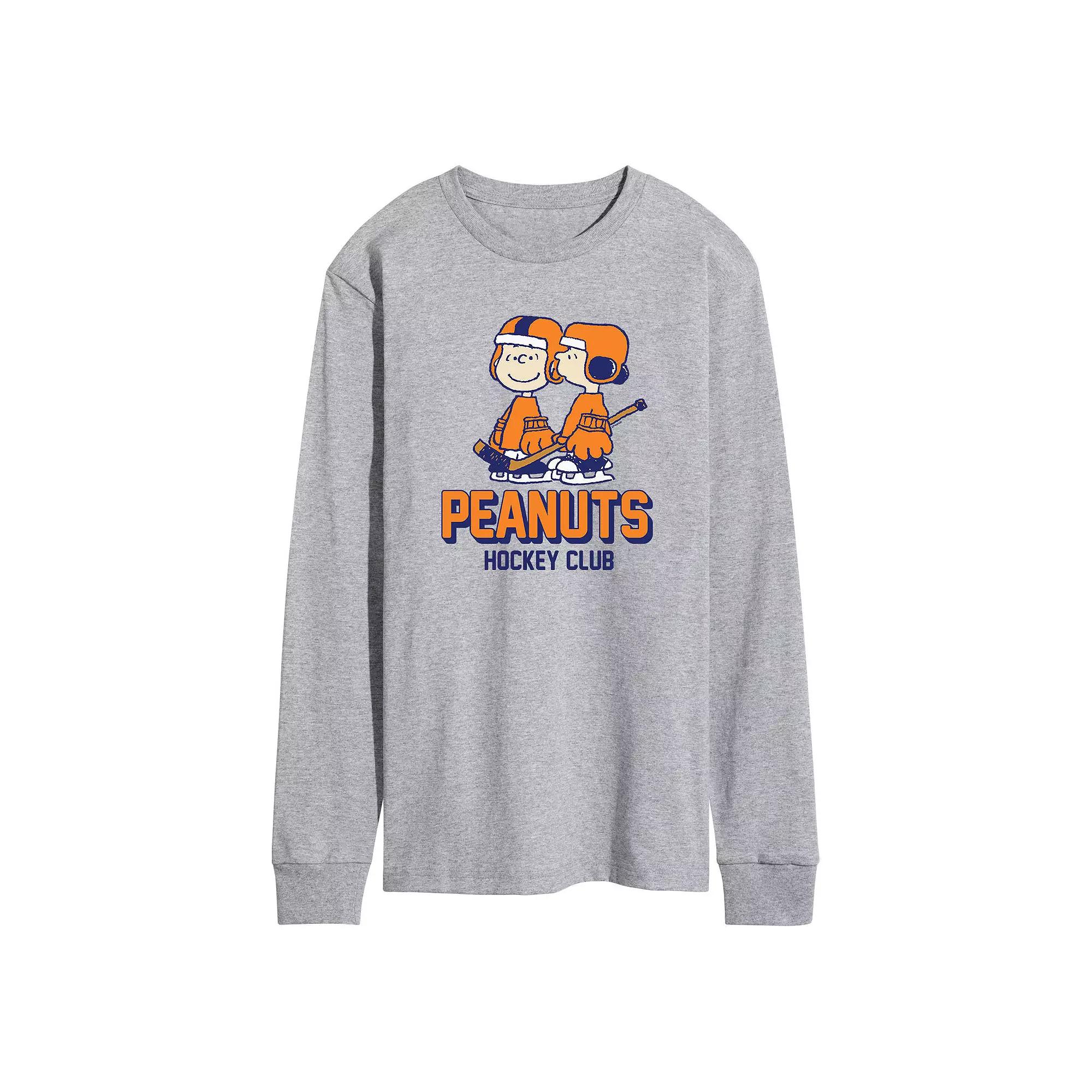 Show off your love for all things Peanuts in this Officially Licensed long sleeve t-shirt.This adult Long sleeve t-shirt is lightweight, soft, and durable; perfect for everyday wear! | Peanuts Men's Hockey Club Long Sleeve Graphic T-Shirt, Grey, Large