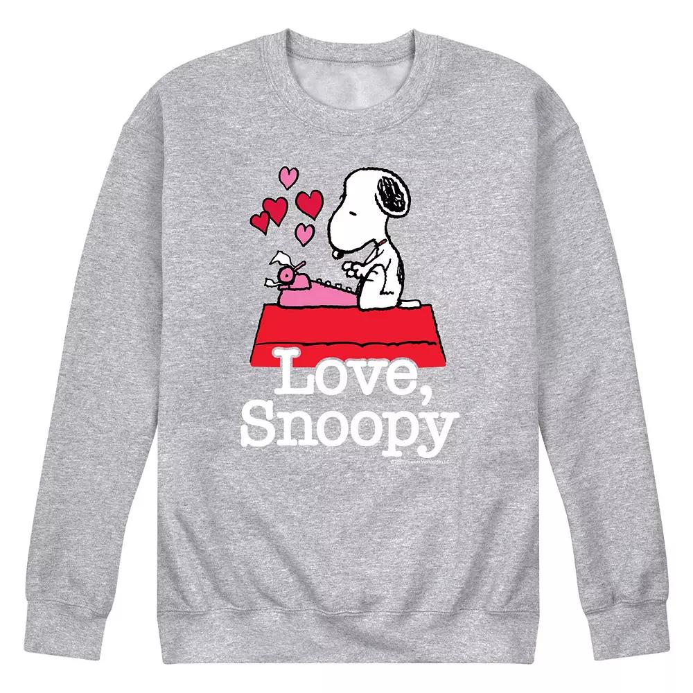 Elevate your graphic tee collection with this mens Peanuts Love Snoopy Fleece Sweatshirt. FEATURES Crewneck Long sleeveFABRIC & CARE Cotton/Polyester Machine wash Imported Color: Med Grey. Gender: male. Age Group: adult. Material: Polyester|Cotton.