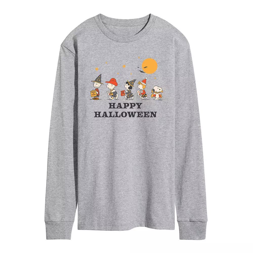 Update your spooky season wardrobe with this Mens Peanuts Retro Halloween Group Long Sleeve Graphic Tee. Update your spooky season wardrobe with this Mens Peanuts Retro Halloween Group Long Sleeve Graphic Tee. FEATURES Crewneck Long sleeveFABRIC & CARE Solid Color: Cotton ; Heather Colors: Cotton/Polyester Machine wash Imported Color: Heather Gray. Gender: male. Age Group: adult.