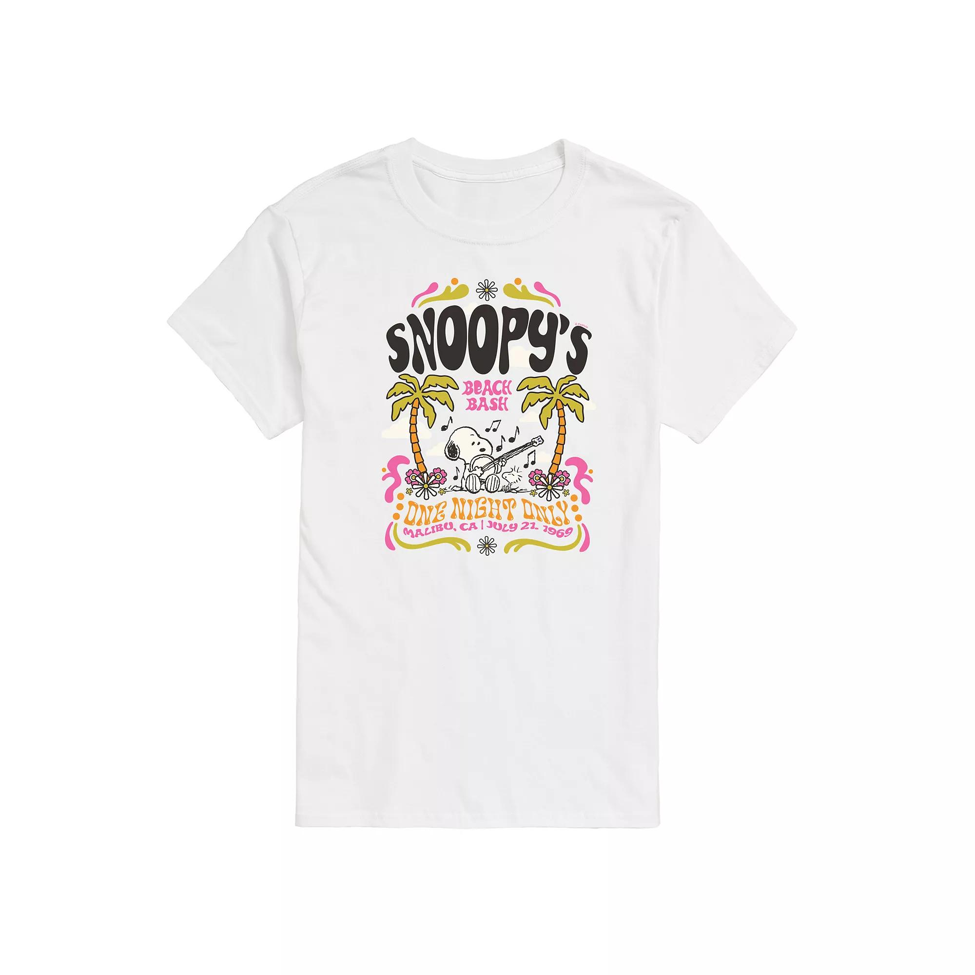 Hell love showing off his personal sense of style with this mens Peanuts Snoopy Beach Bash Graphic Tee. FEATURES Crewneck Short sleeveFABRIC & CARE Solid colors: cotton; Heather colors: cotton, polyester Machine wash Imported Size: XXL. Color: White. Gender: male. Age Group: adult.
