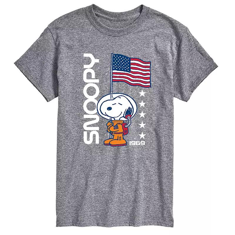 Snoopy was definitely the space captain of the Apollo 11 back in 1969. Show off your belief with this mens Peanuts flag tee. Snoopy was definitely the space captain of the Apollo 11 back in 1969. Show off your belief with this mens Peanuts flag tee. Crewneck Short sleevesFABRIC & CARE Cotton, polyester Machine wash Imported Color: Med Grey. Gender: male. Age Group: adult. Pattern: Graphic.