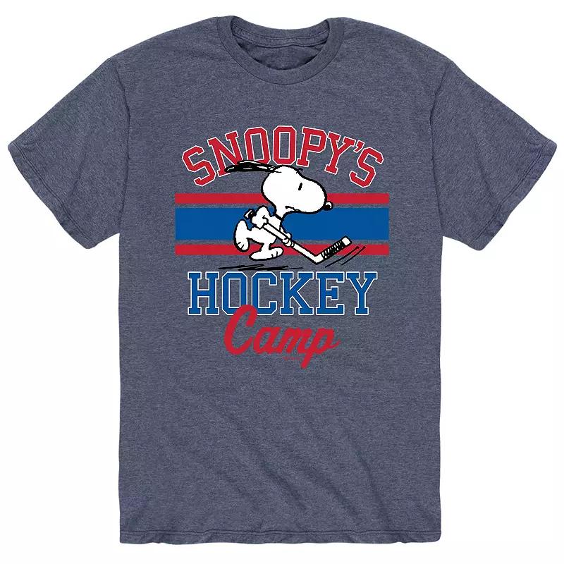Drop the puck! Keep your stick on the ice and stay out of the sin bin with this men's Peanuts "Snoopy's Hockey Camp" tee. Drop the puck! Keep your stick on the ice and stay out of the sin bin with this men's Peanuts "Snoopy's Hockey Camp" tee. Crewneck Short sleevesFABRIC & CARE White, Navy, Yellow, Maroon, Charcoal: cotton Other: cotton/polyester Machine wash Imported Color: Med Blue. Gender: male. Age Group: adult. Pattern: Graphic. Material: Cotton Blend.