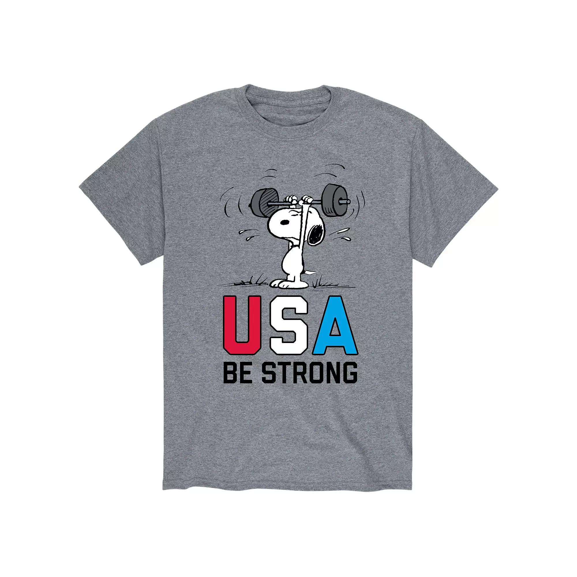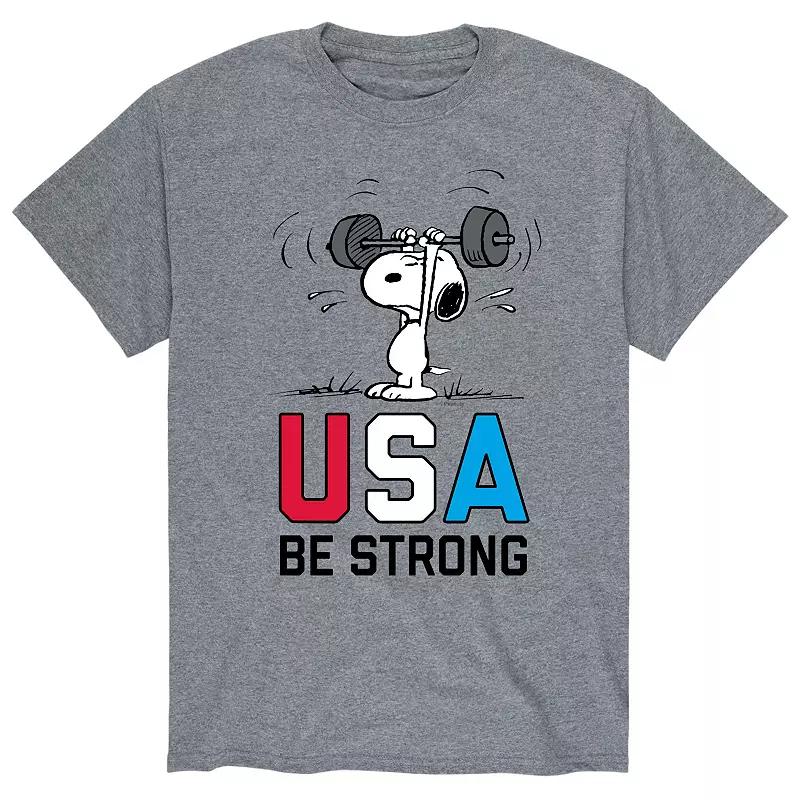 Conquer the day in patriotic style with this men's Peanuts Snoopy USA tee. Conquer the day in patriotic style with this men's Peanuts Snoopy USA tee. Crewneck Short sleevesFABRIC & CARE Solid colors: cotton Heather colors: cotton, polyester Machine wash Imported Color: Grey. Gender: male. Age Group: adult.