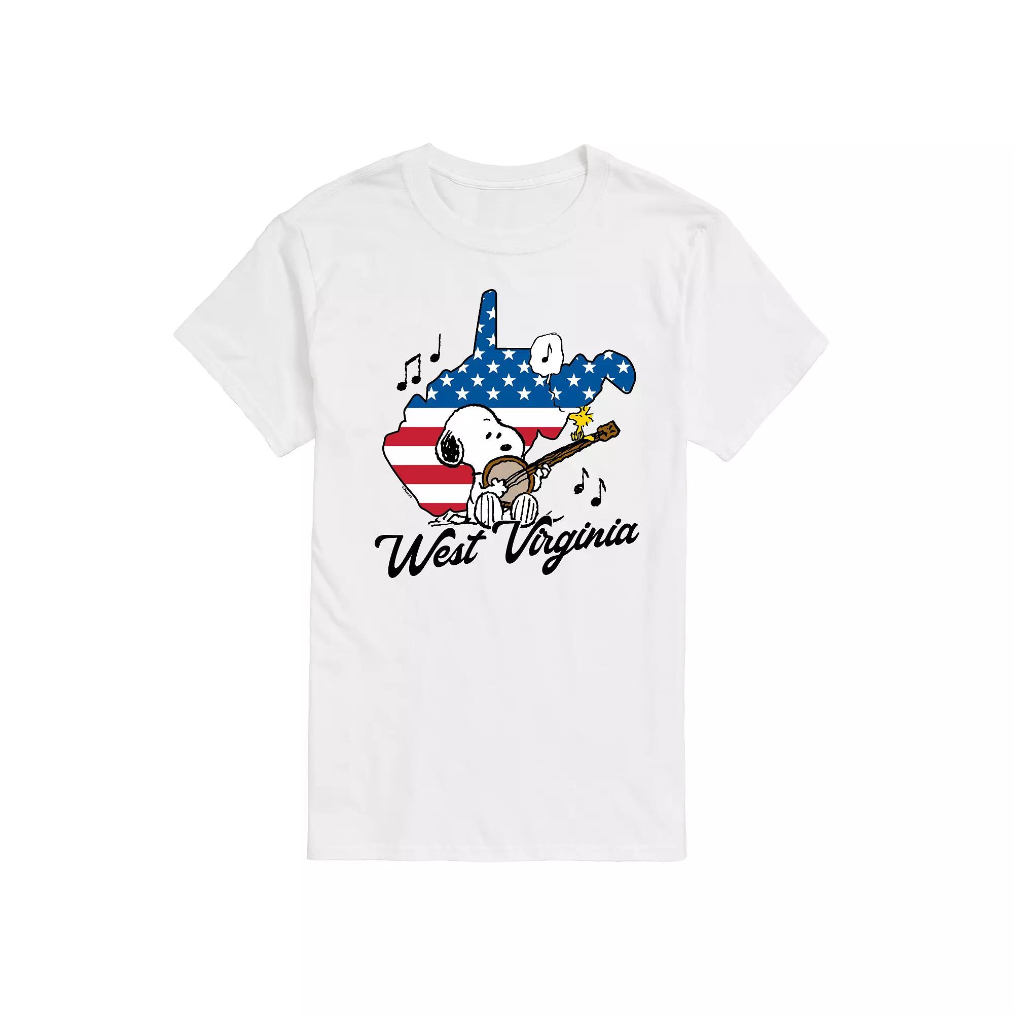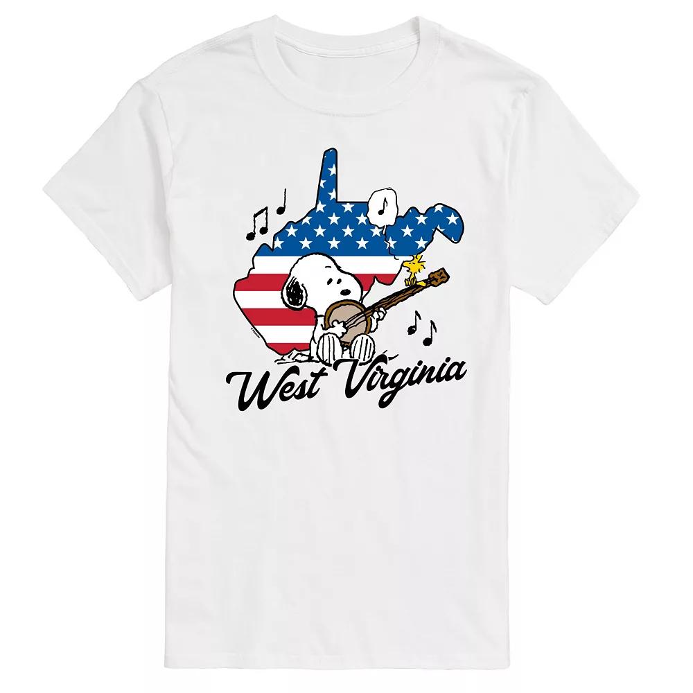 No matter where your travels lead you, youll arrive in style wearing this Mens Peanuts Snoopy West Virginia Americana Graphic Tee. No matter where your travels lead you, youll arrive in style wearing this Mens Peanuts Snoopy West Virginia Americana Graphic Tee. FEATURES Crewneck Short sleeveFABRIC & CARE Solid Color: Cotton ; Heather Colors: Cotton/Polyester Machine wash Imported Size: XL. Color: White. Gender: male. Age Group: adult.